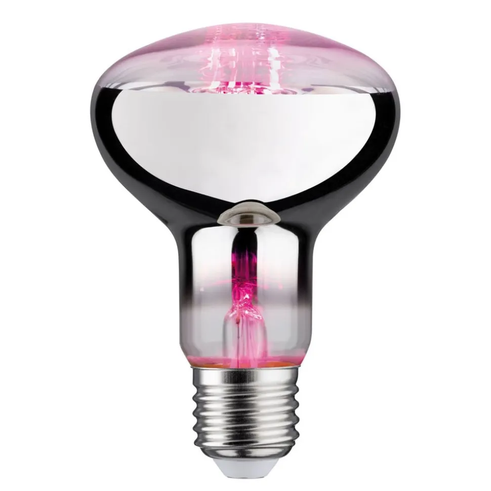 R80 LED-plantepære E27 6,5W Lyset fra denne R80 LED-reflektorpære med en farvetemperatur på 1.300 K spotlighter et særligt farvespektrum, der fremmer væksten af planter indendørs. Hvor indendørs planter ikke får nok dagslys, kan denne LED-reflektorpære give dem det lys, de har brug for til at vokse – Farvetemperatur 1.300 K – Strålevinkel 60°