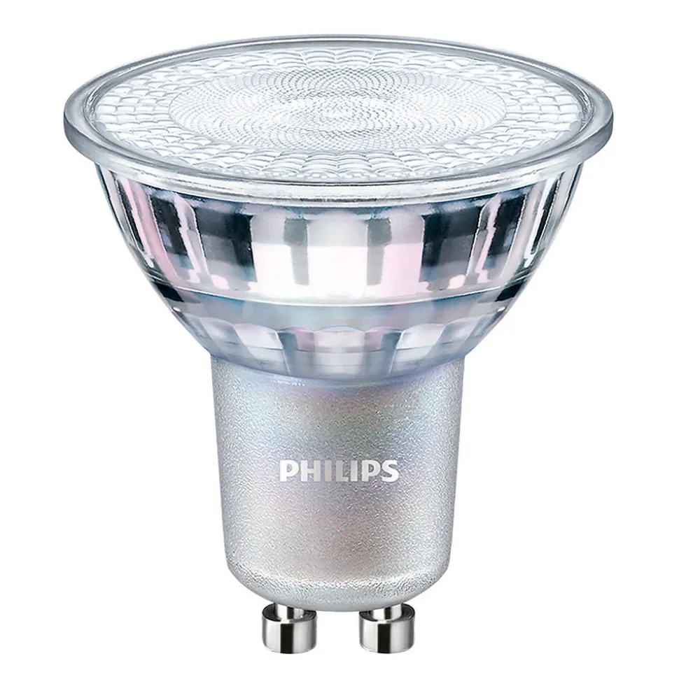 LED-reflektorpære GU10 4,9W Master Value fra Philips Med sine kompakte dimensioner er denne Master LED-reflektorpære GU10 fra Philips den ideelle erstatning for almindelige reflektorpærer med høj spænding på en lang række områder. Den har en lang levetid og høj energieffektivitet, hvilket betyder, at udskiftning af halogenpærer med denne LED-reflektorpære resulterer i betydelige energibesparelser. LED-reflektorpæren er også dæmpbar. Funktioner: – Strålevinkel på 60° – God farvegengivelse med CRI Ra 90 – Dæmpbar – Velegnet til private og kommercielle/cateringområder – Sammenligningsværdi 50 watt