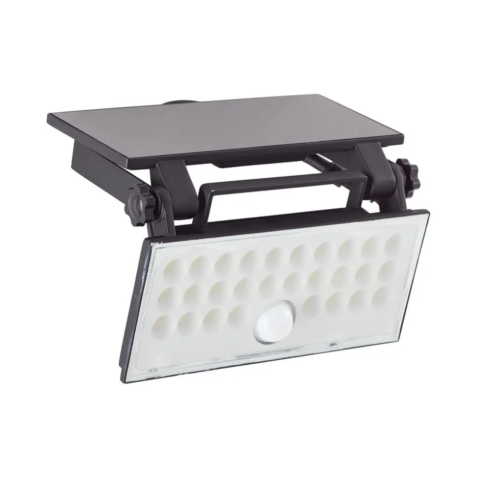 Luton udendørs væglampe i sort med drejeligt lampehoved Den funktionelle, solcelledrevne Luton LED udendørs væglampe er den ideelle løsning til effektiv udendørsbelysning! Designet i sort og udstyret med en praktisk 90-graders drejefunktion imponerer denne spotlight med sine nyttige funktioner til at belyse ethvert udendørs område på en målrettet måde. Den udendørs vægspot udnytter effektivt solenergi, omdanner den til elektricitet og fungerer på en miljøvenlig og effektiv måde, uafhængigt af konventionelle strømkilder. Den integrerede bevægelsessensor giver tre forskellige indstillingsmuligheder for optimal belysning. Spotlighten kan drejes 90 grader, så lyset kan rettes præcis derhen, hvor der er brug for det. Solcellepanelet kan også drejes 90 grader, så det er optimalt i forhold til solen. IP65-spotlighten er støvtæt og beskyttet mod stærke vandstråler – pålidelig belysning, selv under ugunstige vejrforhold.