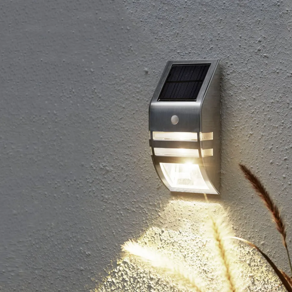 LED-solcellevæglampe Wally i rustfrit stål med bevægelsessensor