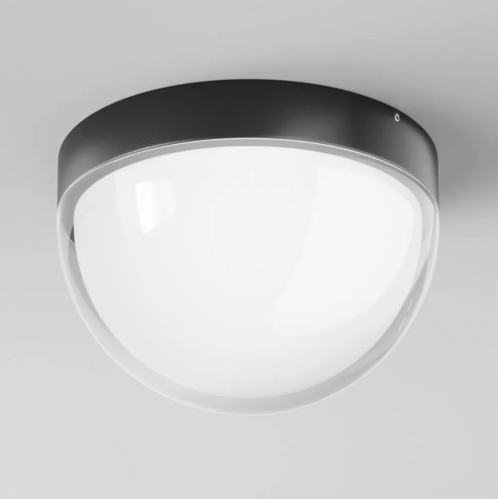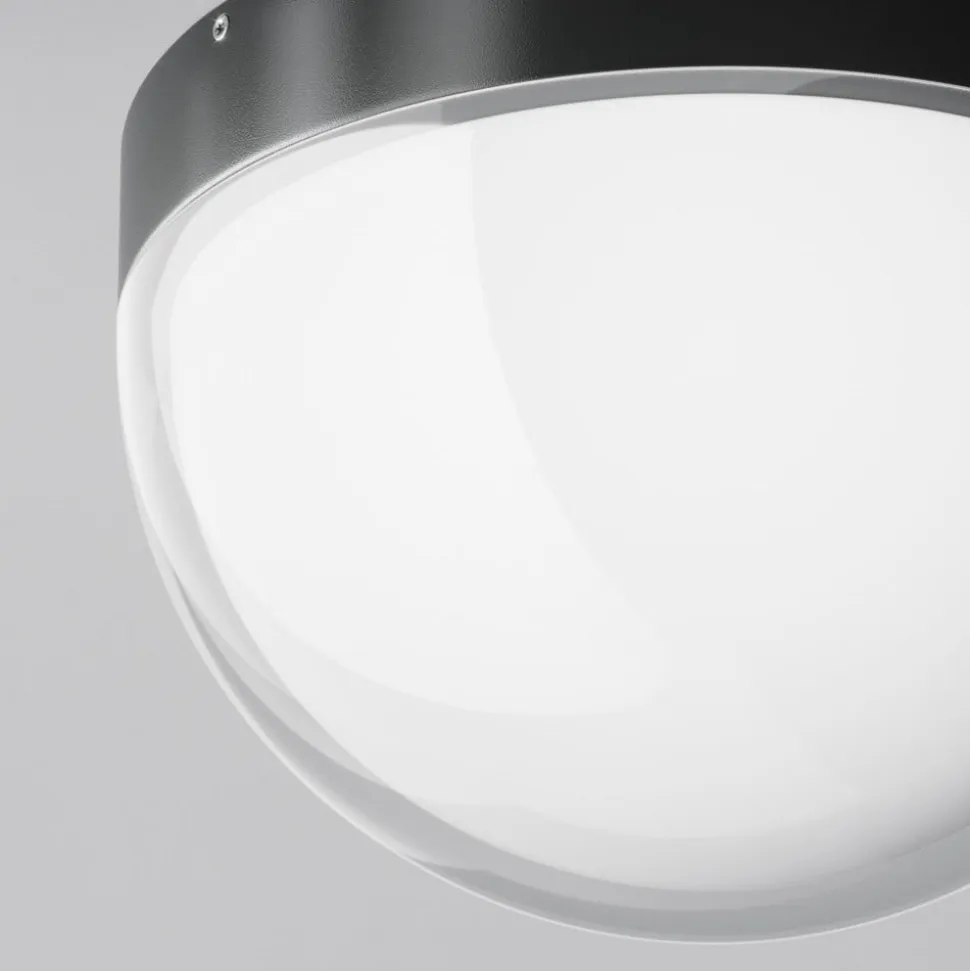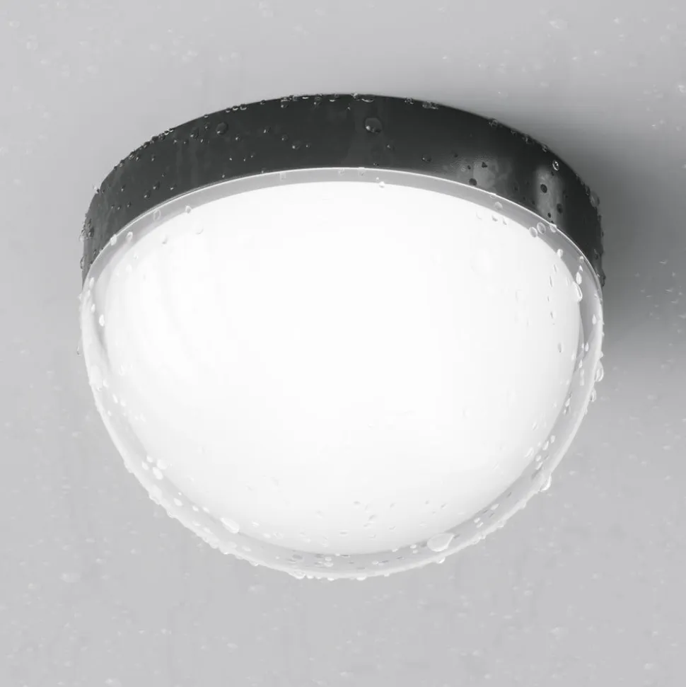 LED udendørs loftlampe Mon overbeviser med sit moderne design og kombinationen af højkvalitets aluminium og mat plast. Med sin kapslingsgrad IP65 er den specielt designet til udendørs brug og tilbyder pålidelig beskyttelse mod støv og vandstråler. Den grafitfarvede overflade i kombination med den hvide, matte diffusor sikrer et harmonisk udseende, der passer perfekt ind i forskellige arkitektoniske stilarter.