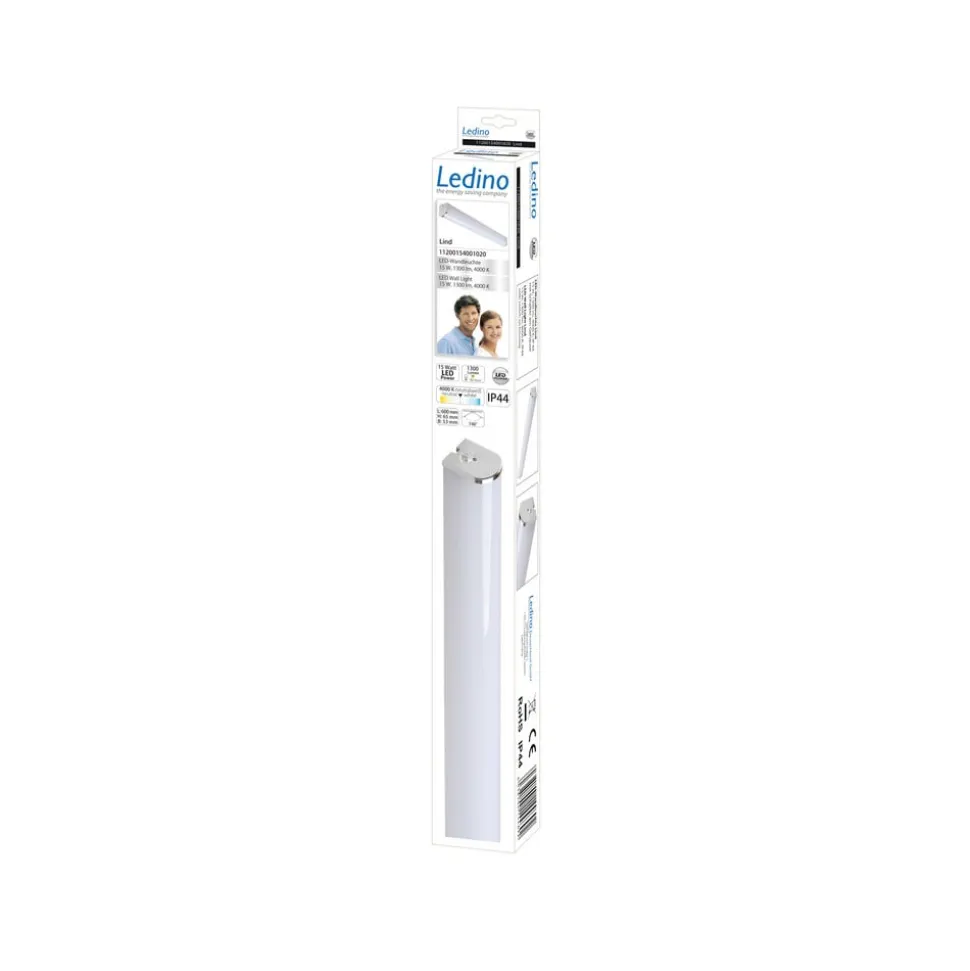 Lind LED-væglampe til badeværelser og fugtige rum Den lange og smalle Lind LED-væglampe udsender universelt hvidt lys, der kan tændes og slukkes med kontakten på huset. Polykarbonatskærmen sikrer en blændfri og ensartet lysfordeling. Takket være IP44-beskyttelsesgraden er lampen perfekt til brug i badeværelser eller andre fugtige områder