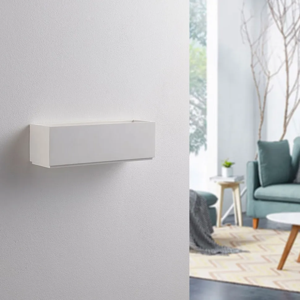 Benno kantet gipsvægslampe i moderne stil Med sit enkle, hvide design passer Benno til mange miljøer, og lysudsendelsen opad og nedad opfattes som særlig hyggelig. Lyset fra gipsvægslampen kan f.eks. bruges til at give en stemningsfuld belysning i korridorer eller som accentbelysning i opholdsrummet. Lampen kan udstyres med en G9-pære.