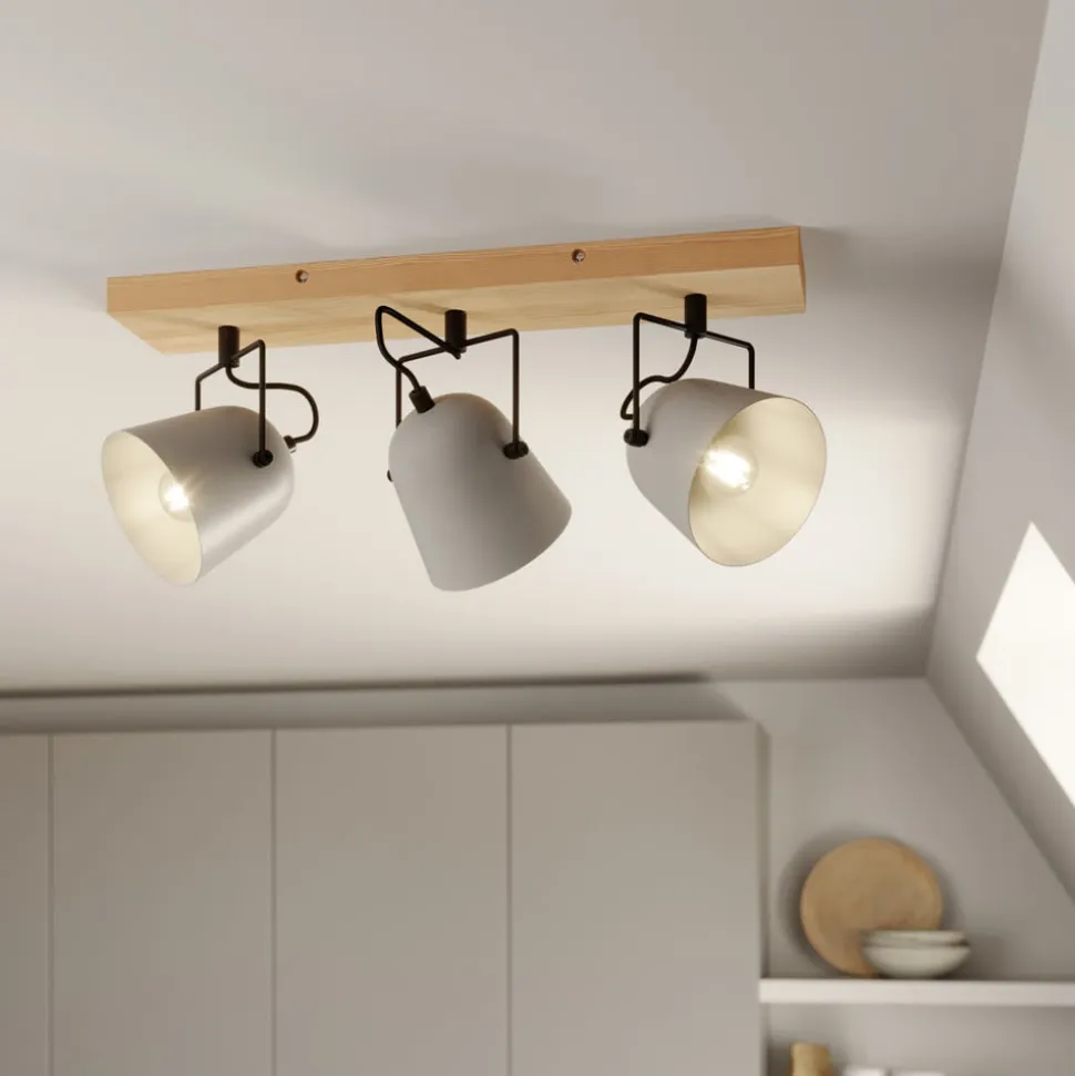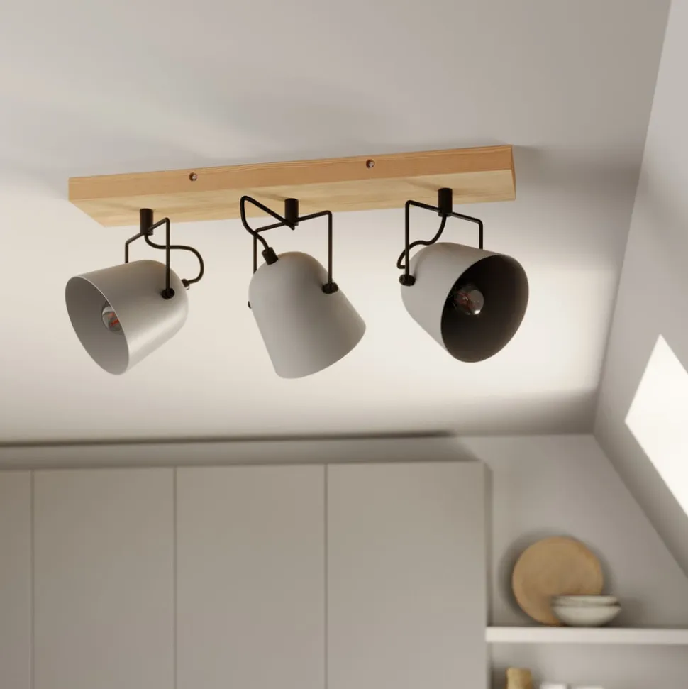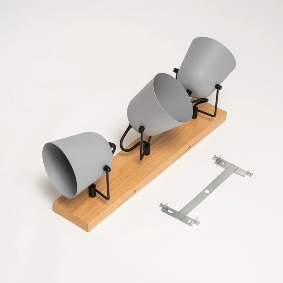 Tre-pære loftlampe Adalin i grå i et robust design lavet af træ og stål