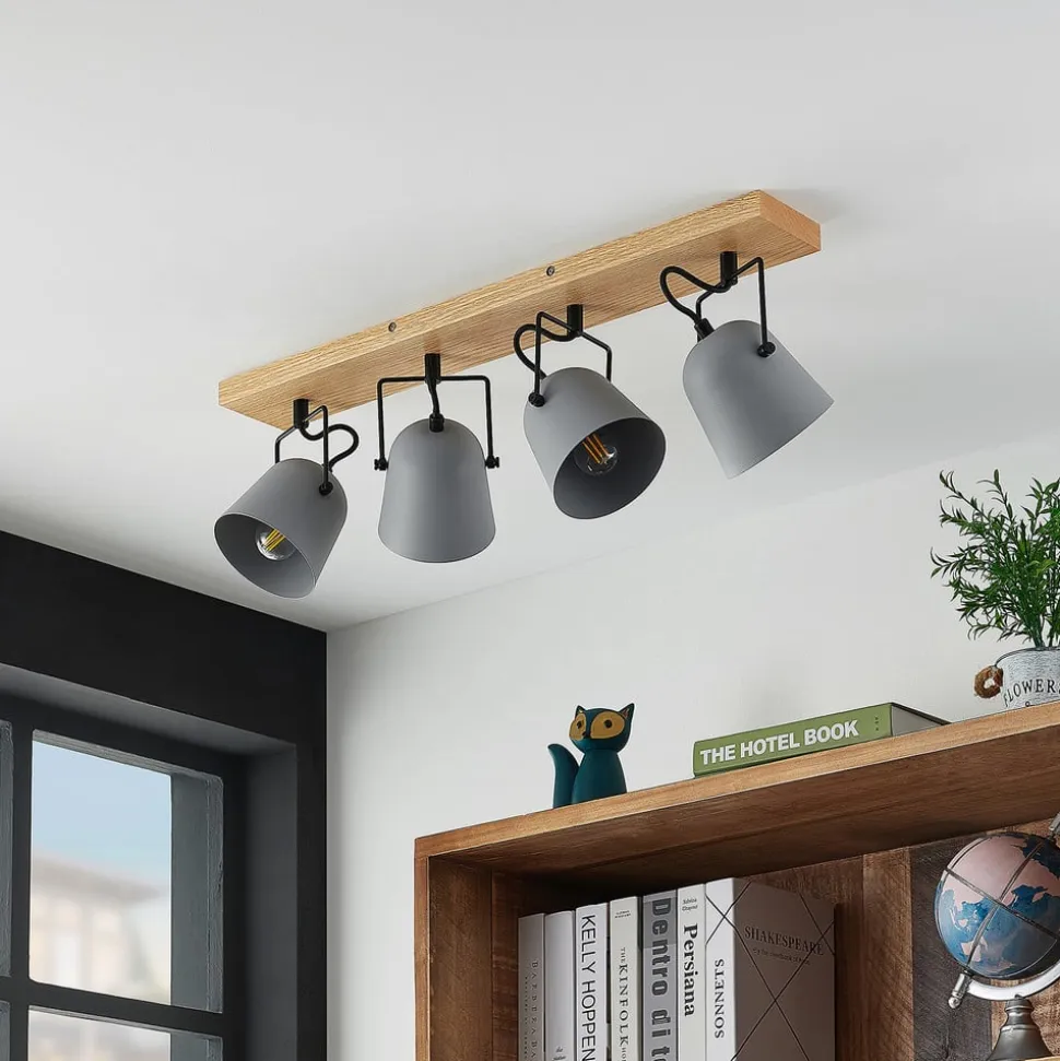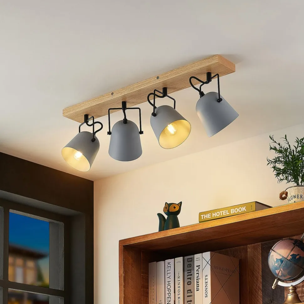 Med sit lange ydre giver Adalin rigelig belysning til det indre. Dens loftsarmatur er lavet af lyst egetræ og bærer fire lampeskærme, som er lavet af gråt stål og kan udstyres med E14-pærer. Armaturet er perfekt egnet til montering i en stue, men det gør også en super figur i gangen. Træelementet giver Adalin en diskret landhus-flair og skaber en hyggelig atmosfære i indretningen. Loftslampen er således ikke kun en dagligdags lyskilde, men overbeviser også som et stilfuldt dekorativt objekt.