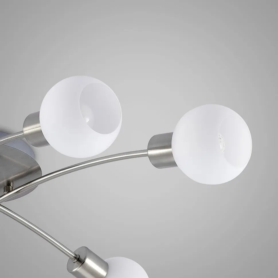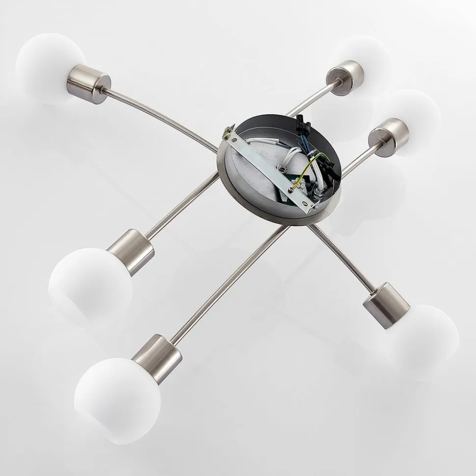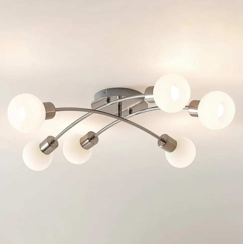 Lindby Agmar loftlampe, nikkelfarvet, glas, 6 lyskilder, E14