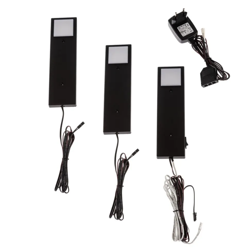 Lindby Amaryll LED-underskabsbelysning, sæt med 3, sort