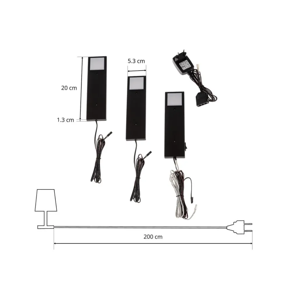 Sort Amaryll LED-underskabsbelysning i et praktisk sæt med 3 Amaryll LED-underskabsbelysning kan installeres næsten overalt og er især praktisk som belysning til garderobeskabe eller køkkenelementer. Den kommer i et sæt med 3 stk. og giver et varmhvidt lys, der er meget behageligt for øjet. De fastmonterede LED-moduler er både lysstærke og energibesparende. Designet af denne underskabslampe passer perfekt ind i moderne husholdninger. Den rektangulære form og den sorte finish virker ikke påtrængende og harmonerer godt med forskellige miljøer.