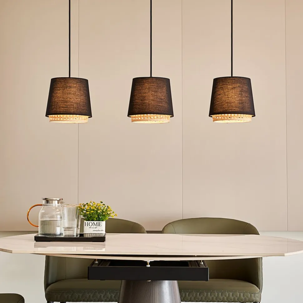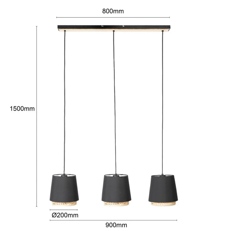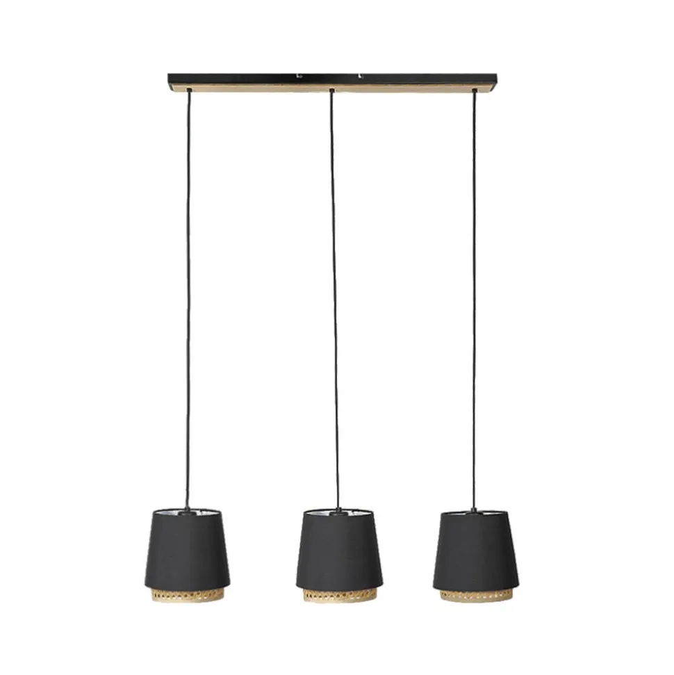 Lindby Ananya hængelampe af jern og træ, 3 lyskilder