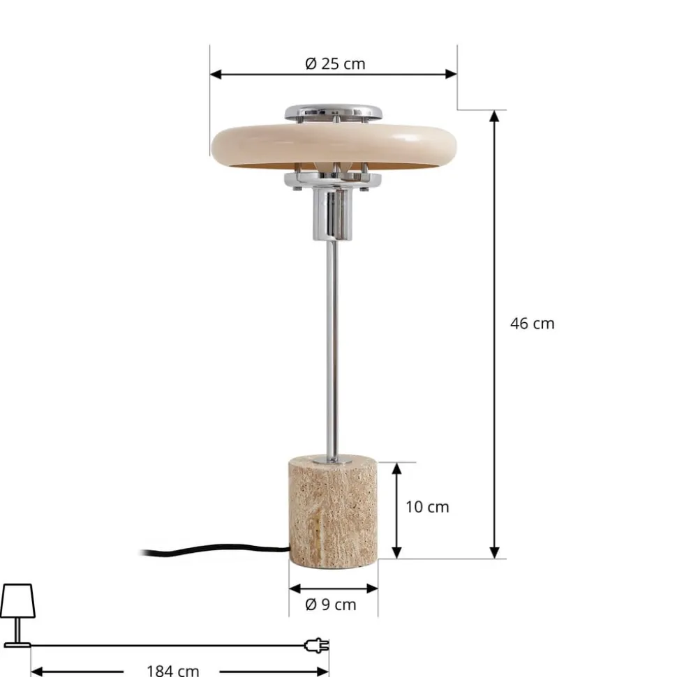 Branford bordlampen kombinerer stilfuld elegance med et strejf af vintage charme. Lampen er fremstillet af metal og ædelt travertin og passer harmonisk ind i forskellige rum, såsom stuen og spisestuen. Den beige farve understreger det tidløse design og skaber en varm og indbydende atmosfære.