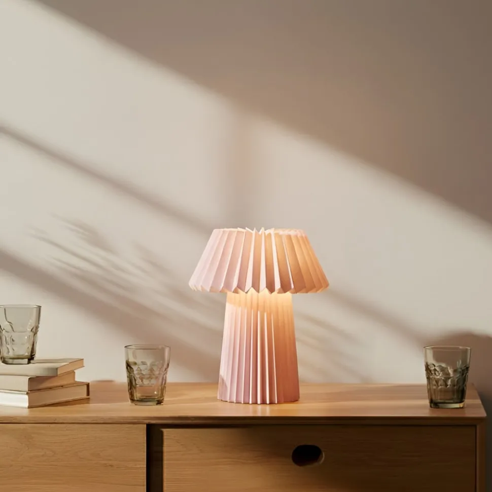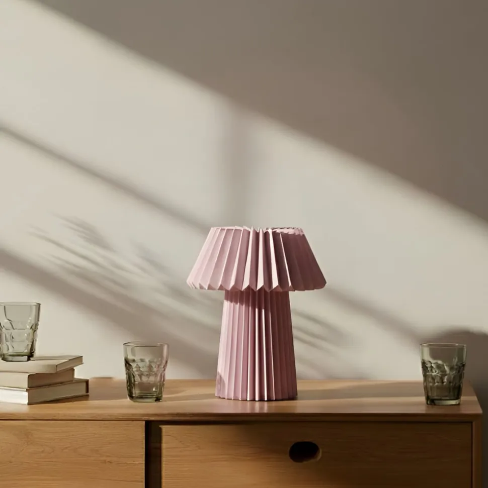 Lindby bordlampe Magali: elegance og lyskomfort til opholds- og soveområder Oplev, hvordan Lindby bordlampen med sin foldede skærm i pink ikke kun skaber et visuelt højdepunkt, men også har en betydelig indflydelse på atmosfæren i opholds- og soveværelser. Den gennemtænkte lyskilde kombinerer design og funktionalitet og giver rummene et særligt præg. Uanset om den bruges til afslapning i stuen eller som en blød lyskilde på natbordet, skaber denne bordlampe en atmosfære, der er både beroligende og inspirerende. Med sine klare linjer og bløde farveskema passer den perfekt ind i forskellige indretningsstile og bliver en stilfuld accent i ethvert rum.