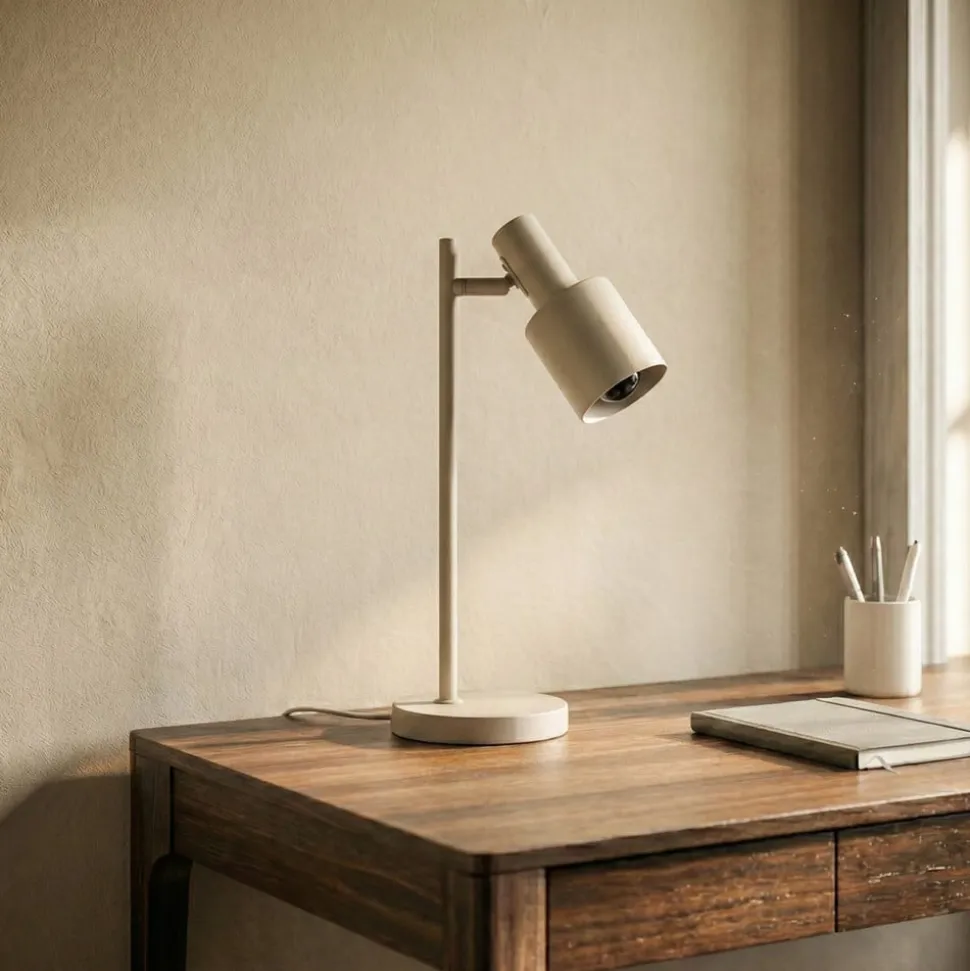 Ovelia bordlampe med justerbar skærm Ovelia bordlampen er en smuk lyskilde til mange rum. Uanset om det er på kontoret, i gangen, i soveværelset eller i stuen – denne lampe skaber en inspirerende atmosfære. Med sit iøjnefaldende design og sin diskrete farve er den et statement og et blikfang i ethvert rum. Lampeskærmen er justerbar, så vinklen på det udsendte lys kan tilpasses. Ovelia tændes og slukkes ved hjælp af kontakten, der er integreret i kablet.