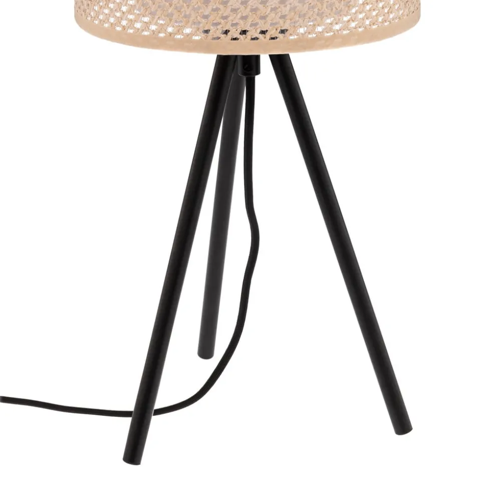 Soula tripod bordlampe med plastik- og tekstillampeskærm Denne bordlampe er noget af et statement. Bordlampen er brugervenlig at betjene via en lyskontakt. Den er dekorativ med sit flotte udseende og beriger dit indretningskoncept. Bordlampen vil passe perfekt ind i ethvert rum og skabe en hyggelig atmosfære. Denne bordlampe kombinerer alle Lindby-mærkets kvaliteter og særlige egenskaber. Lampen har farven lyst træ. Den leveres med en E27-fatning. Dit interiør vil blive dygtigt suppleret af denne bordlampe. Bordlampen er en fremragende tilføjelse til dit interiør.