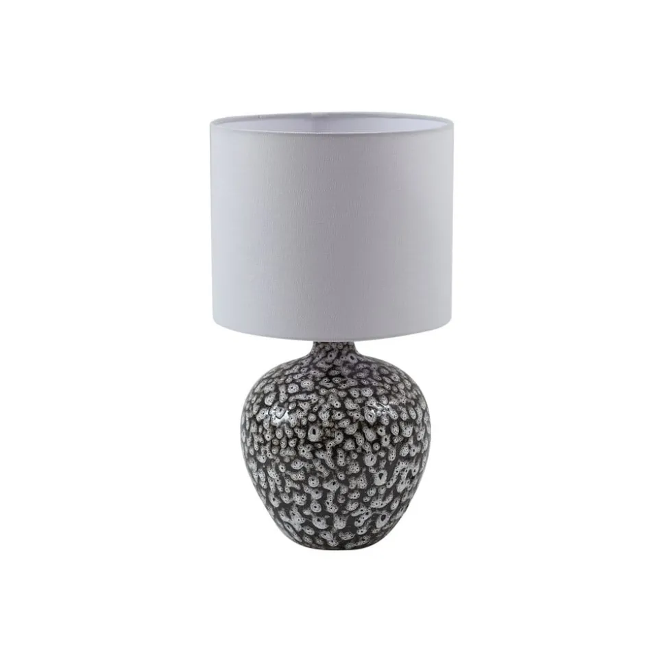 Dekorativ Thalassia-bordlampe med mønstret keramikfod Thalassia-bordlampen består af en keramikfod og en hørskærm. Kombinationen af materialer og farver skaber en særlig harmonisk effekt og gør lampen til et smukt blikfang, selv når den er slukket. Den lyse hørskærm sender et blændfrit, varmt lys ud i omgivelserne. Den mønstrede base skaber en dekorativ accent i opholdsrummet. Bordlampen tændes og slukkes ved hjælp af en kontakt på ledningen. Thalassia kan med fordel bruges som lyskilde i entréen eller stuen.