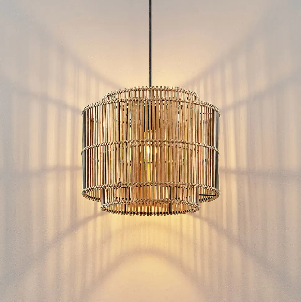 Naturligt udseende Bridga-pendel med dobbeltlagsskærm af bambus Bridga imponerer med sit smukke naturlige udseende og er en hængelampe, der kommer til sin ret i tilsvarende stilarter som boho-interiør. Lampeskærmen af lys bambus med en naturlig overflade har dobbeltlag og giver ikke kun et smukt udseende, men også et hyggeligt lysmønster. Hængelampen kan derfor bruges godt i skandinaviske stilarter, men er endnu bedre egnet som en tilføjelse til boho-interiører, der er stærkt afhængige af naturlige materialer og hyggelige omgivelser.