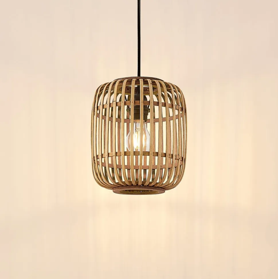 Lindby Canyana hængelampe, natur, rattan, Ø 22 cm