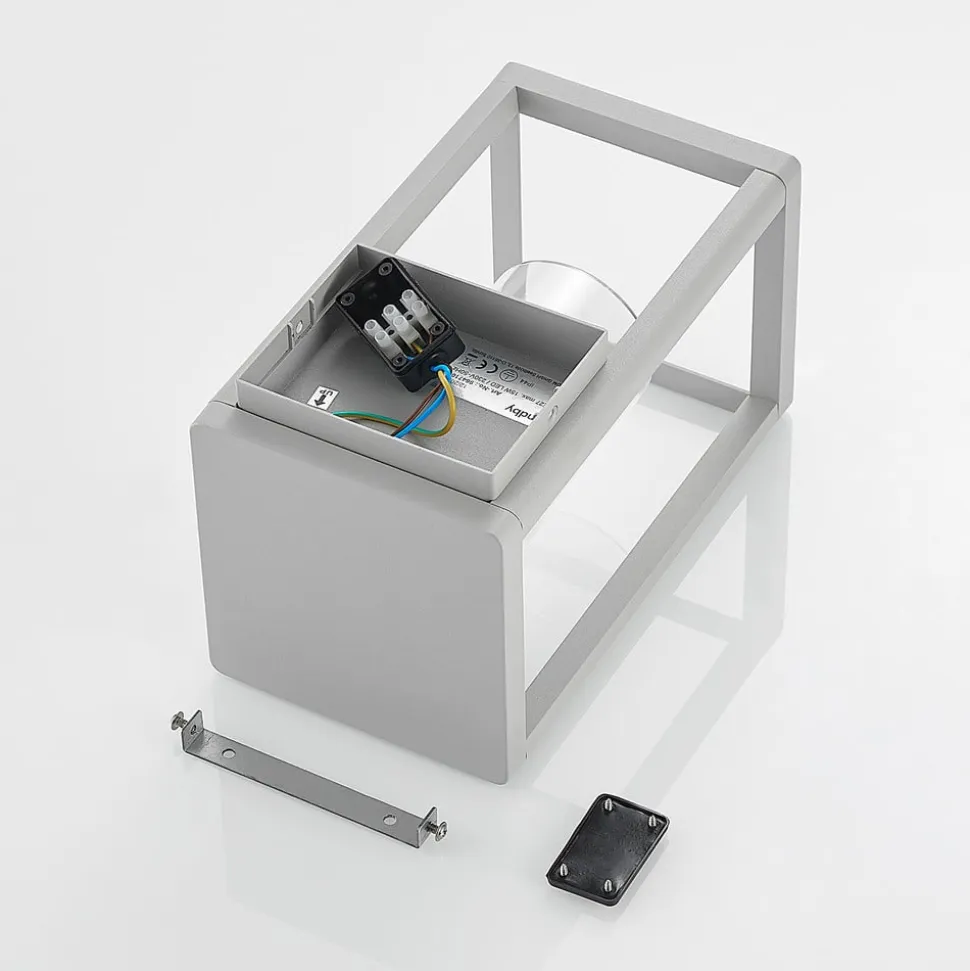 Lindby Estami udendørs væglampe, sølv, metal, 27 cm