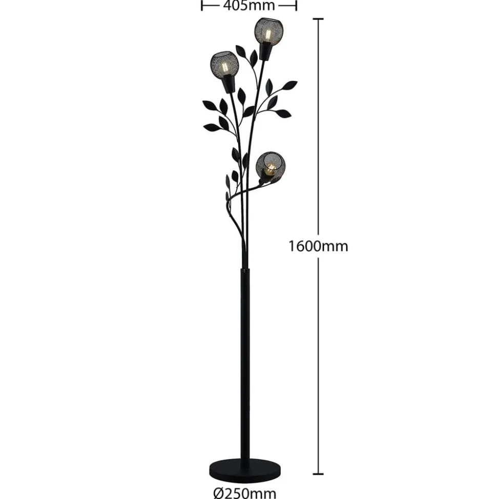 Lindby Florentine gulvlampe Kanye, 160 cm, sort, 3 lyskilder.