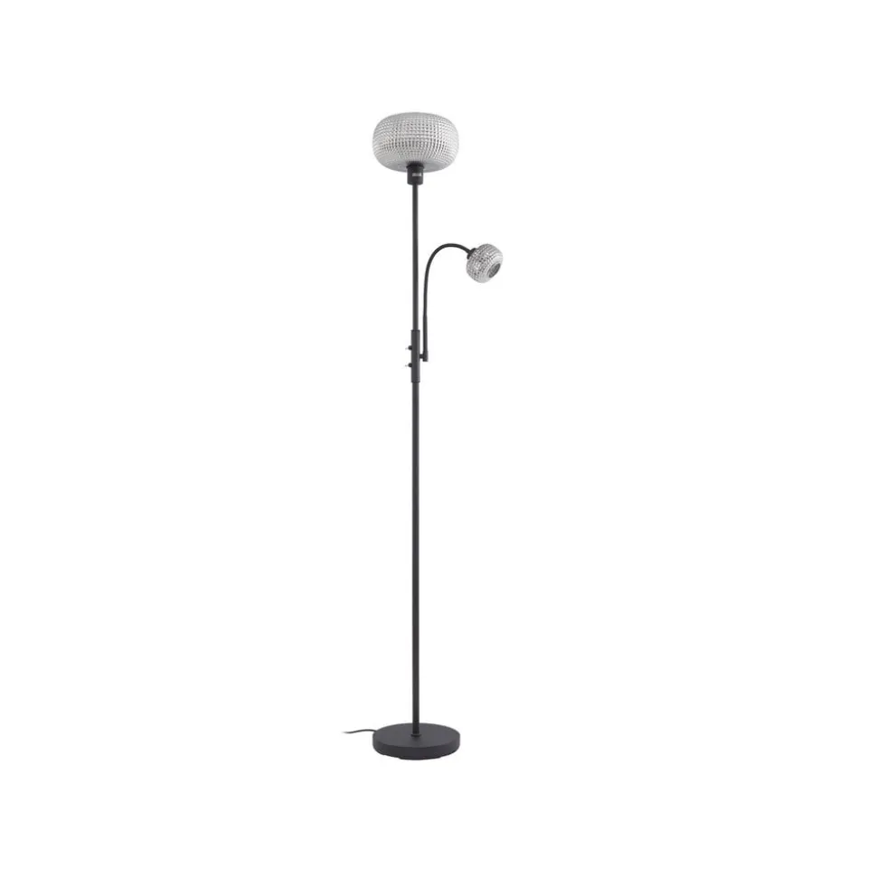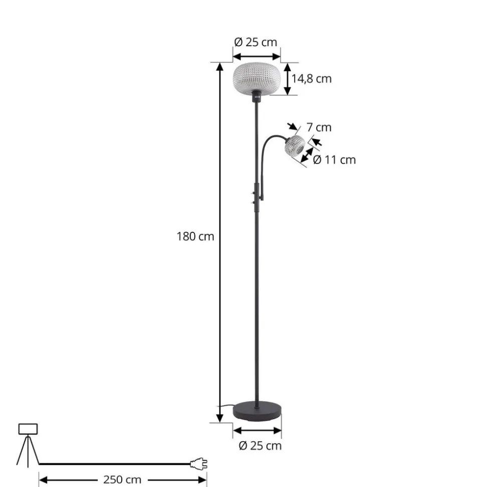 Lindby gulvlampe Aliette, sort/grå, glas, læselampe