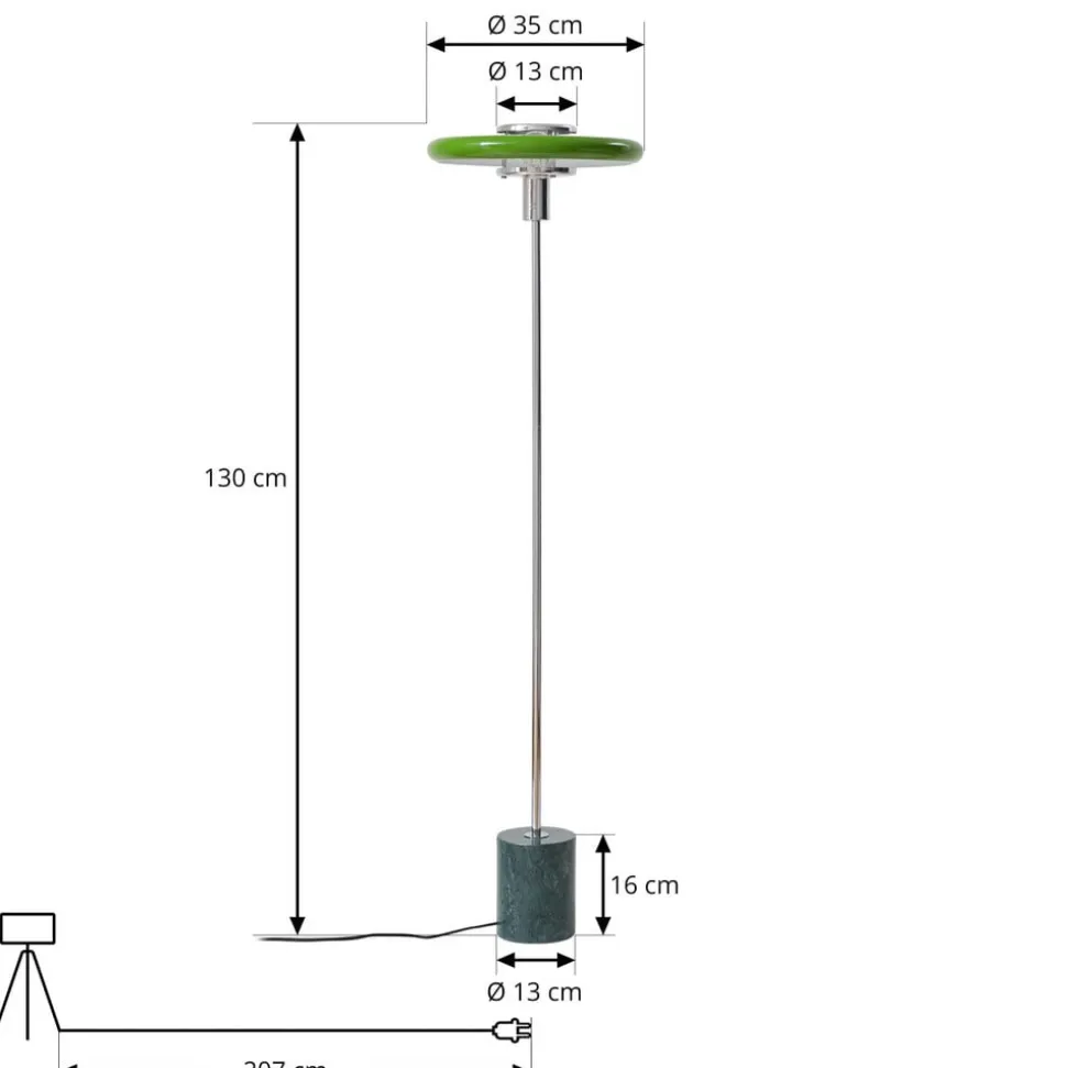 Branford gulvlampe kombinerer tidløs vintage stil med stabiliteten af metal og marmor. Den grønne farve giver ethvert rum, hvad enten det er stuen eller spisestuen, et særligt præg. Samspillet mellem materialer af høj kvalitet og klassisk design gør denne lampe til et blikfang, der udstråler både elegance og holdbarhed.