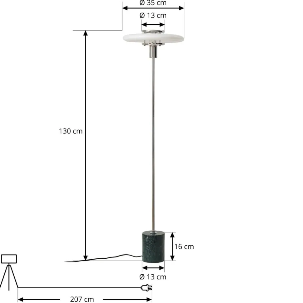 Branford gulvlampe imponerer med sin elegante kombination af opalglas og marmor, der giver ethvert rum et særligt præg. Med sit vintage-design passer den perfekt ind i stuen og spisestuen og skaber en atmosfære, der både er beroligende og inspirerende. Farvekombinationen af hvid og grøn giver et friskt, naturligt accent, der værdsætter interiøret.