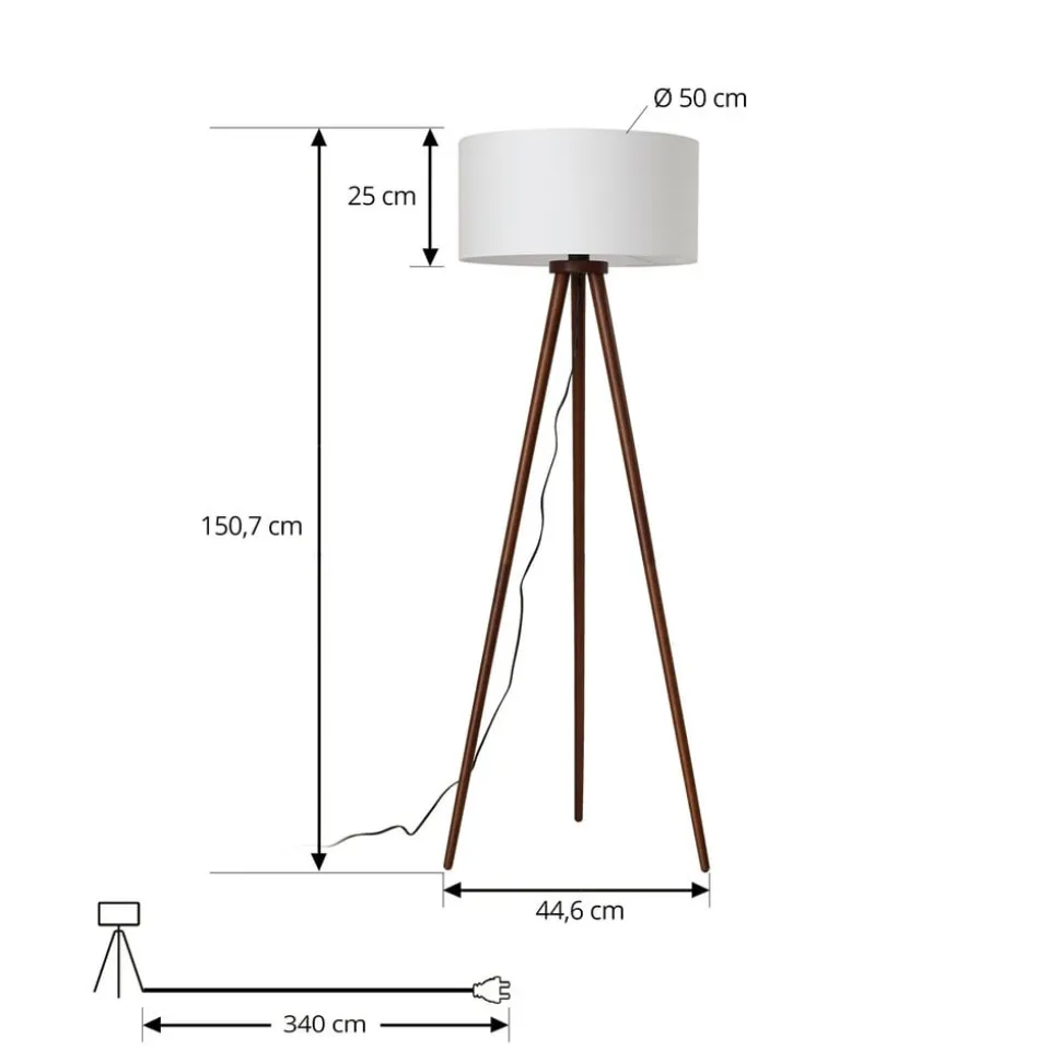 Gulvlampen Charlia forener skandinavisk elegance med varmen fra valnøddetræ og tekstil. Denne kombination af naturlige materialer og klare linjer skaber en harmonisk atmosfære, der passer perfekt ind i stuen, soveværelset eller spisestuen. De mørke træfarver og den hvide lampeskærm skaber et afbalanceret lysspil, der både kan virke beroligende og stimulerende.