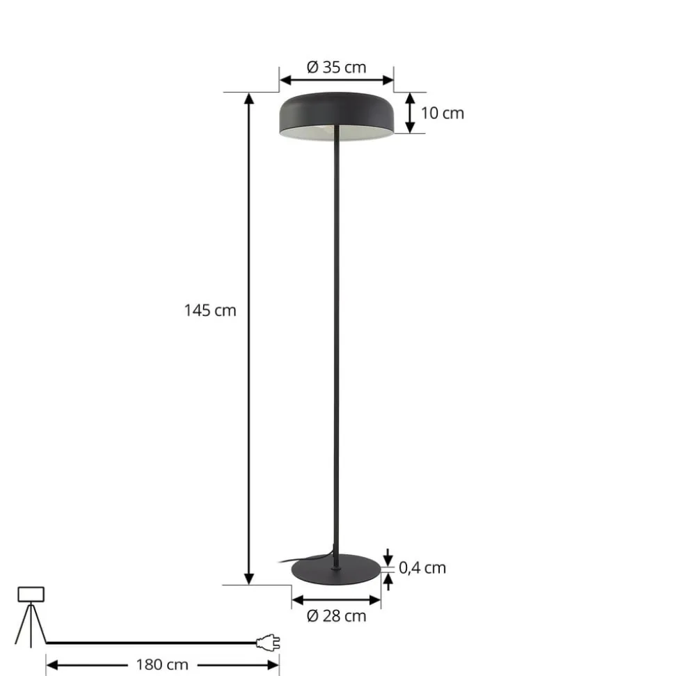 Edion gulvlampe: elegance og stil til din stue Oplev Lindby Edion gulvlampen, et mesterværk i moderne design, der vil forvandle din stue til en oase af ro og elegance. Med sit slanke, sorte stel og den harmonisk afstemte runde skærm giver denne gulvlampe ikke kun en behagelig belysning, men er også et stilfuldt tilbehør til ethvert rum. Gulvlampen er specielt designet til brug i stuen, hvor den sætter accenter med sin moderne stil og samtidig skaber en atmosfære, der indbyder til både afslapning og kreativt arbejde. Dens lys er ikke kun en funktionel del af rummet, men også et afgørende element, der i høj grad påvirker stemningen.