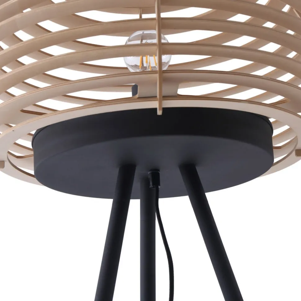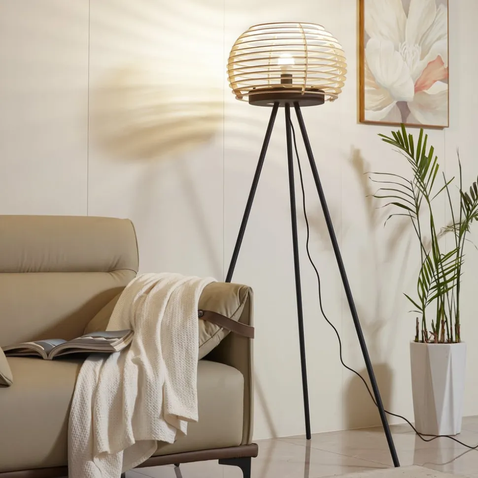 Lindby gulvlampe Ediz, sort, træ, 159 cm høj, E27