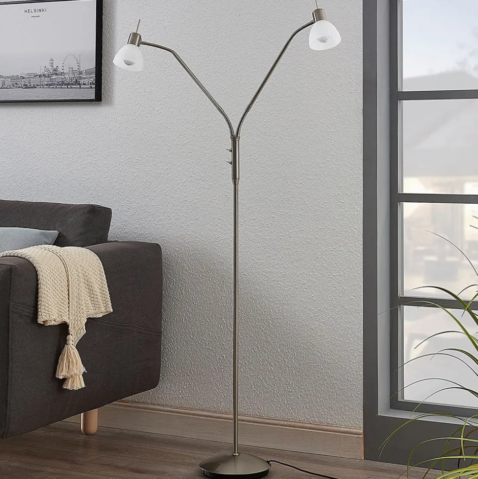 Lindby gulvlampe Gwendolin, 160 cm, nikkelfarvet, 2 lyskilder.
