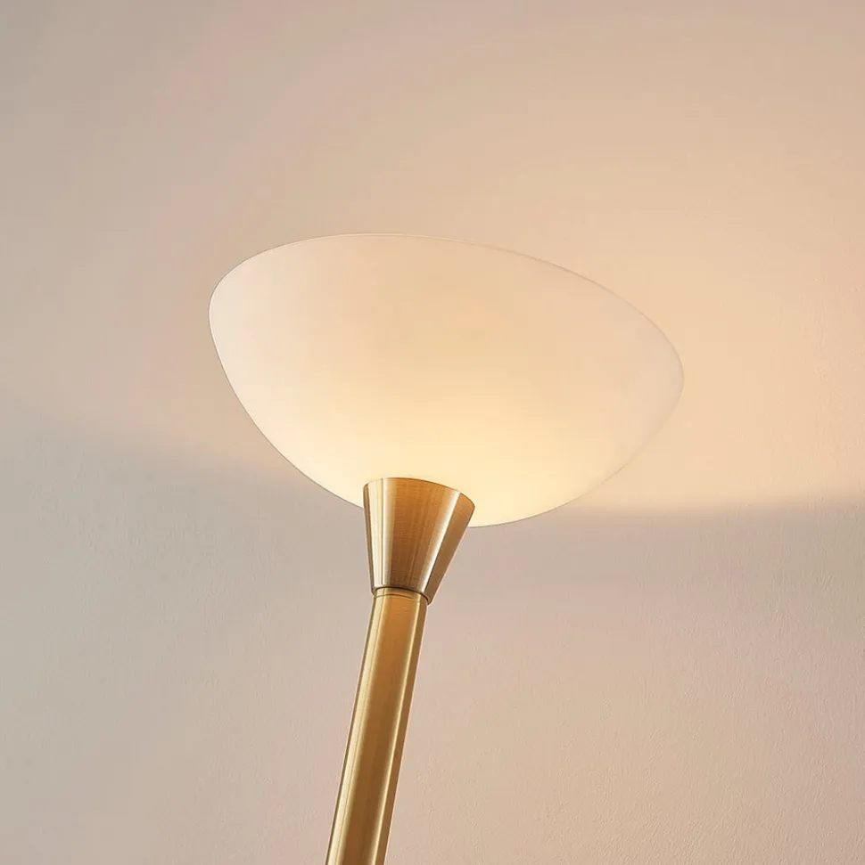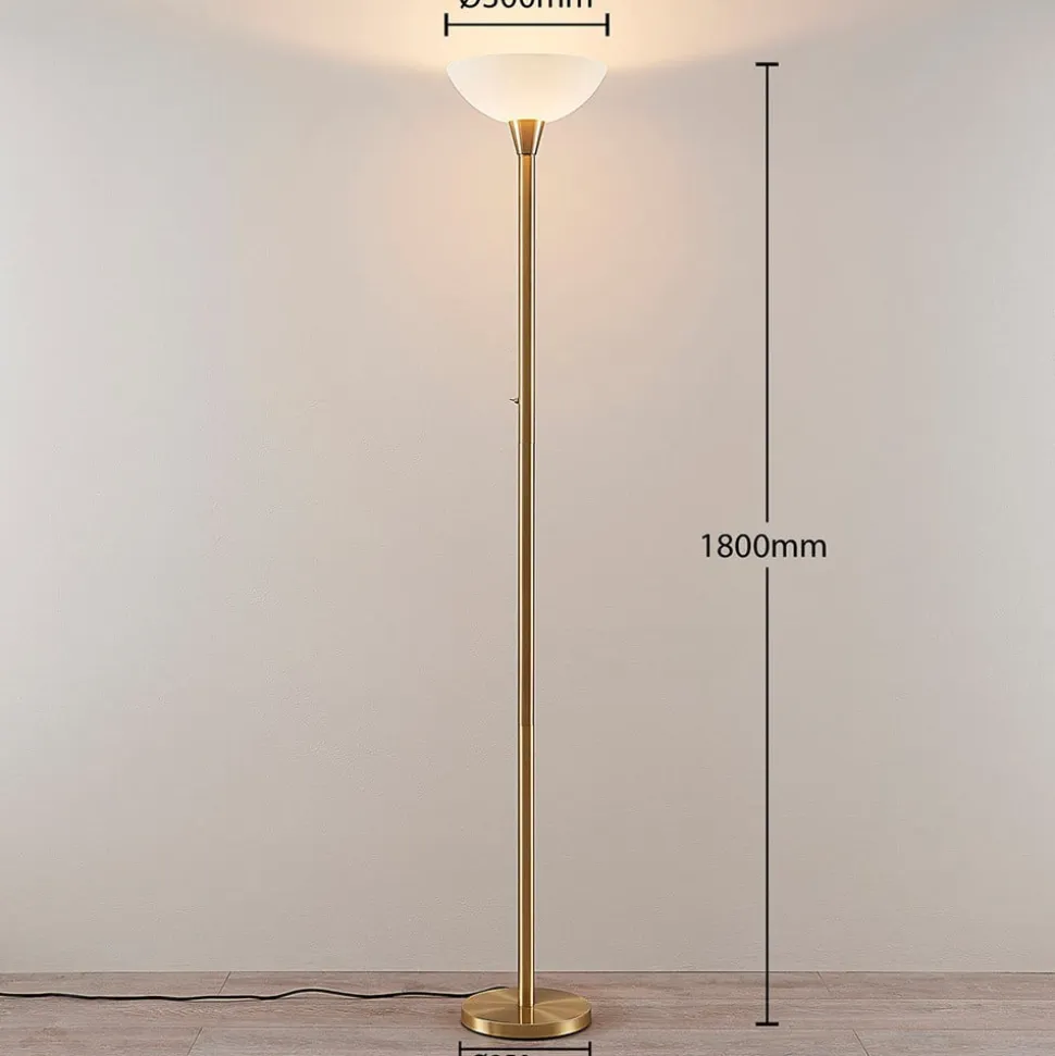 Lindby gulvlampe Ignacia, messingfarvet, glas, 180 cm, E27