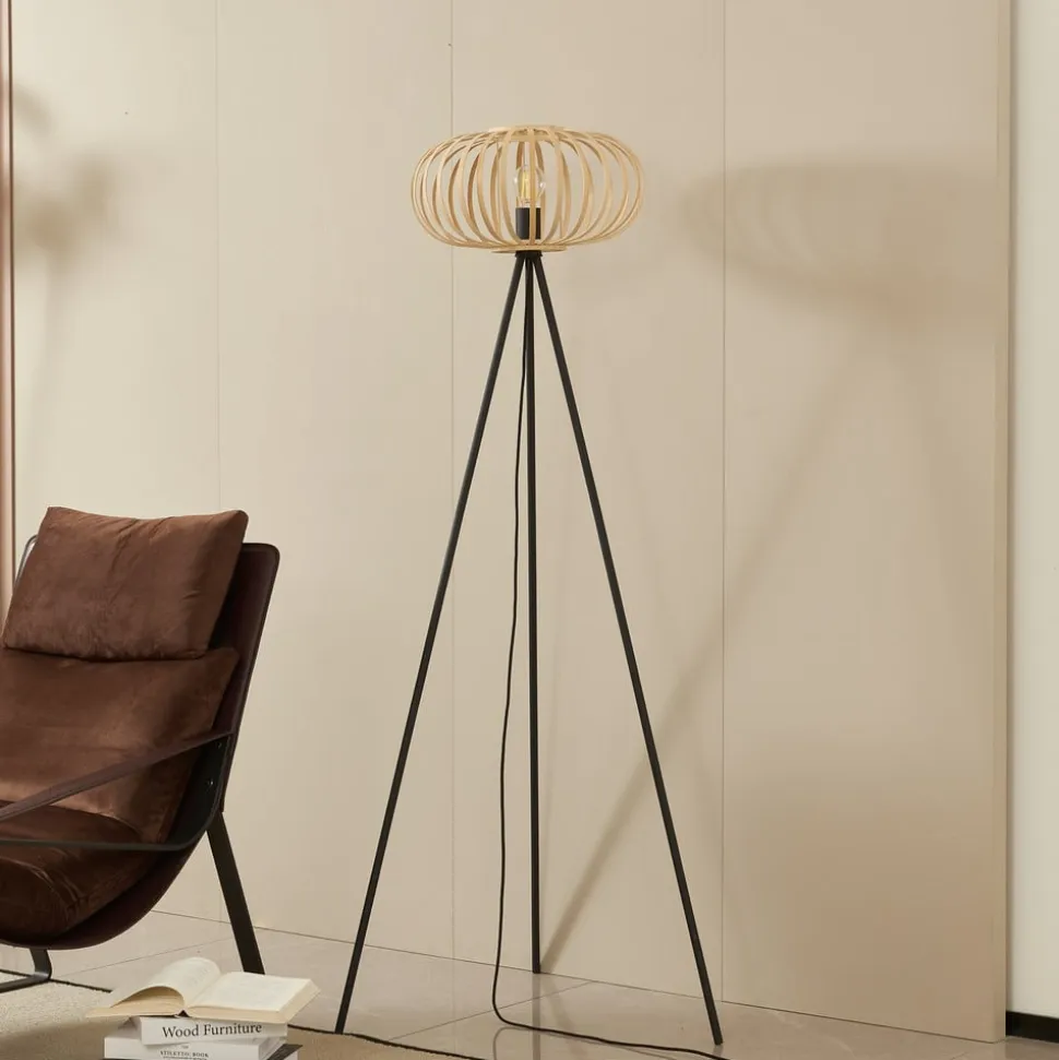 Lindby gulvlampe Lielle, naturlig bambus, Ø 40 cm