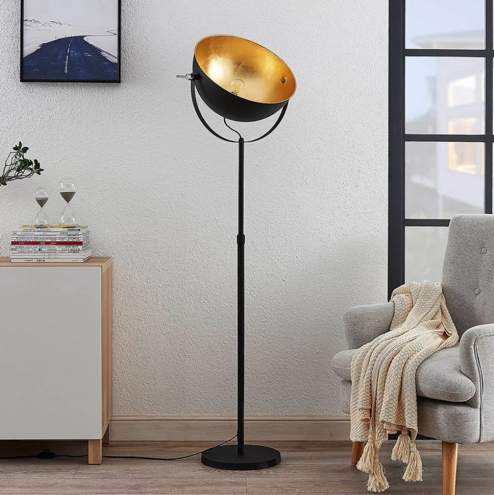 Lindby gulvlampe Muriel, 1 lyskilde, sort/guld, metal