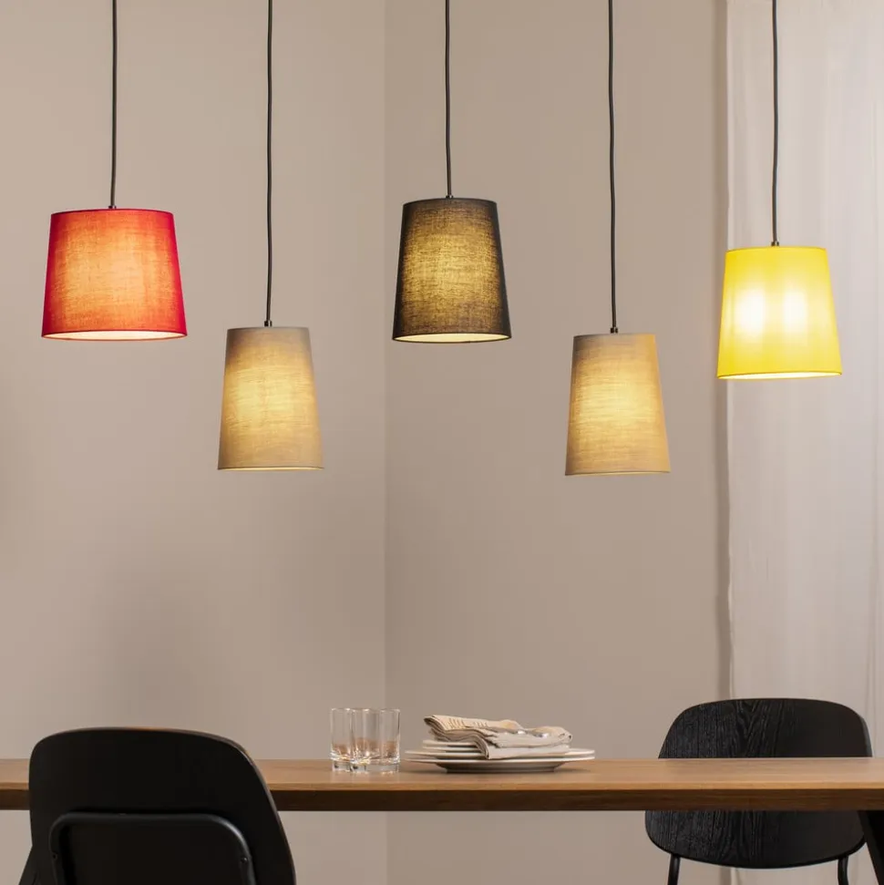 Pendellampe Amilia med 5 lyskilder og lampeskærme i forskellige farver