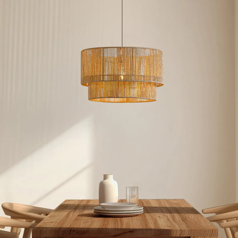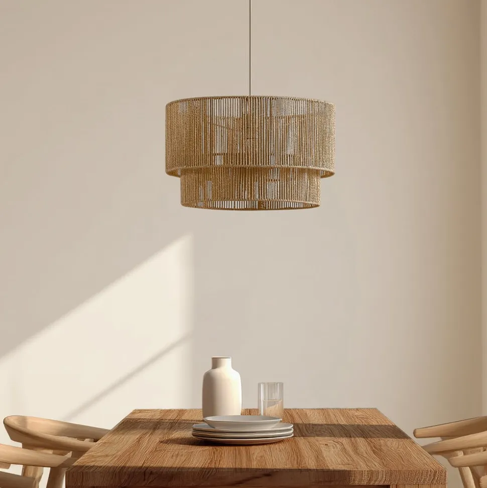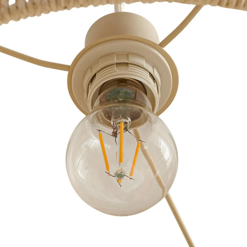 Hængelampen Anuva forener rustik charme med moderne funktionalitet og er et blikfang i ethvert rum. Den giver stuer, soveværelser eller spisestuer en varm og indbydende atmosfære. Den beige farve sikrer en harmonisk lysfordeling og understreger lampens naturlige karakter.