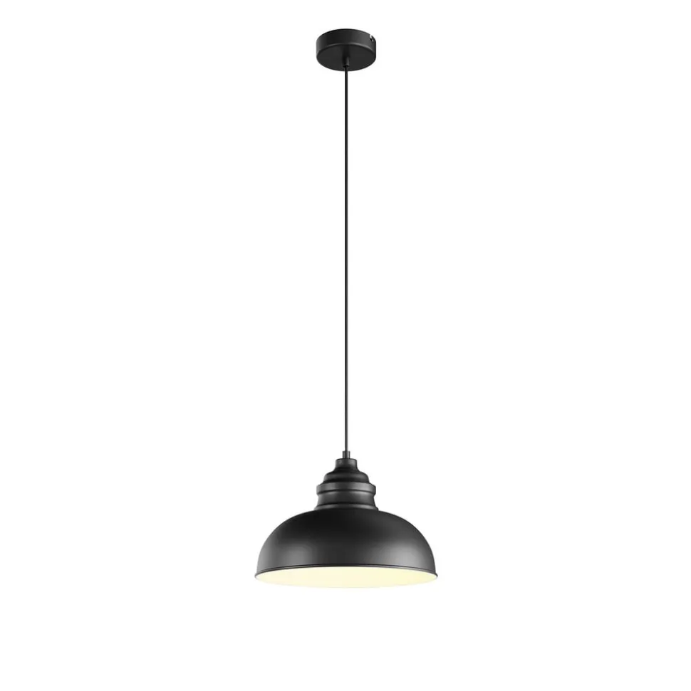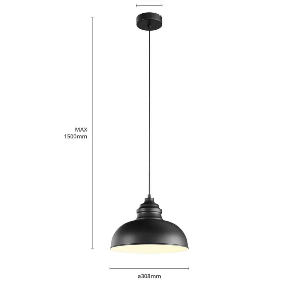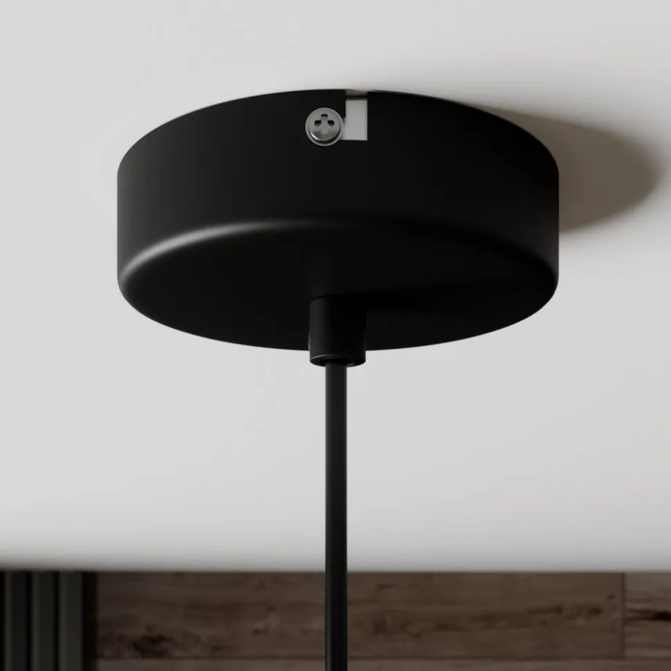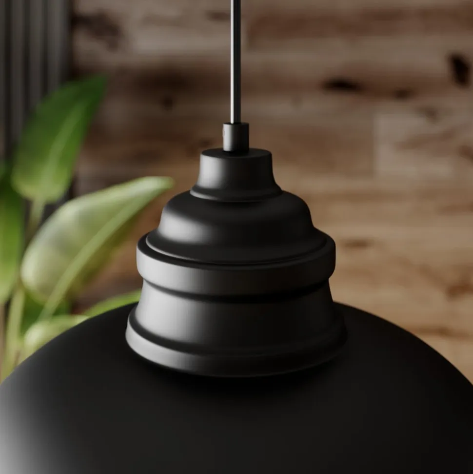Matsort Cliona hængelampe Cliona hængelampen har en matsort farve over det hele. Kun indersiden af skærmen adskiller sig fra dette, da skærmen er hvid på indersiden. Det sikrer, at lyset kan udsendes så godt som muligt. Lampen ville se godt ud over et spisebord, men andre områder er også velegnede. På grund af skærmens form og metalmaterialet sendes lyset dog kun nedad, og overfladen nedenunder oplyses særligt godt og kraftigt.