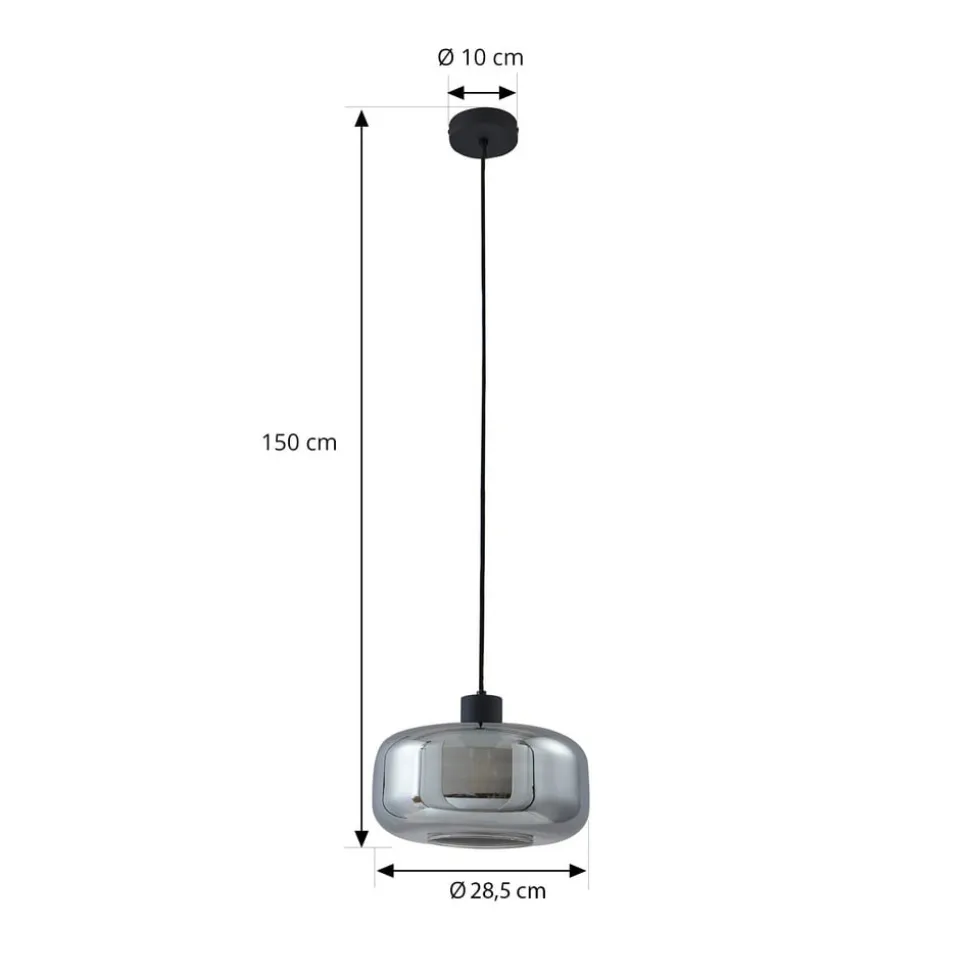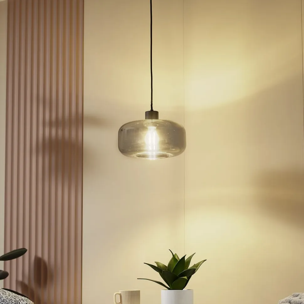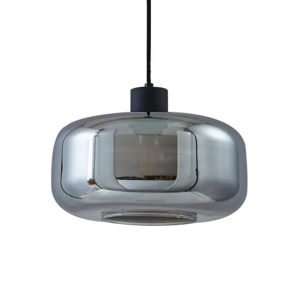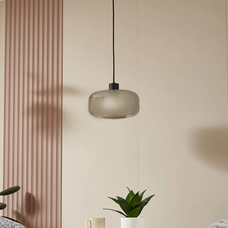 Hildur hængelampe i et design med en enkelt 1 lyskilde i røggråt glas