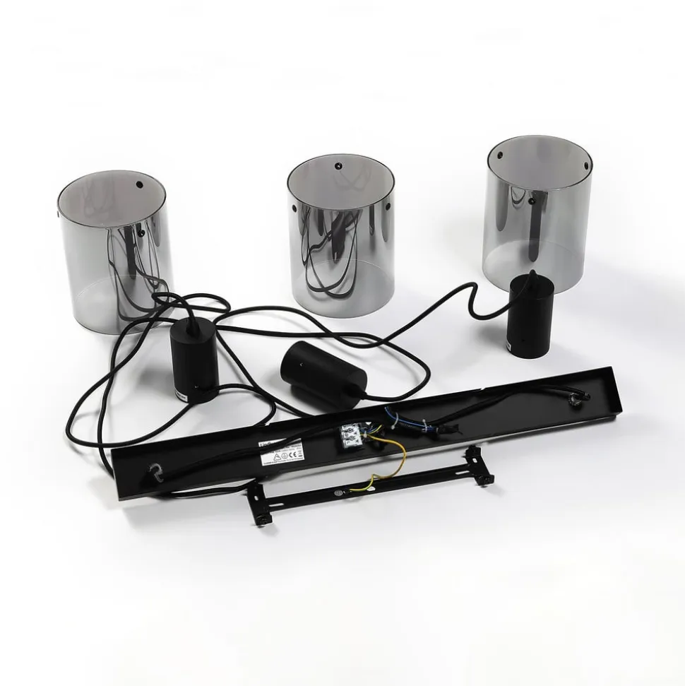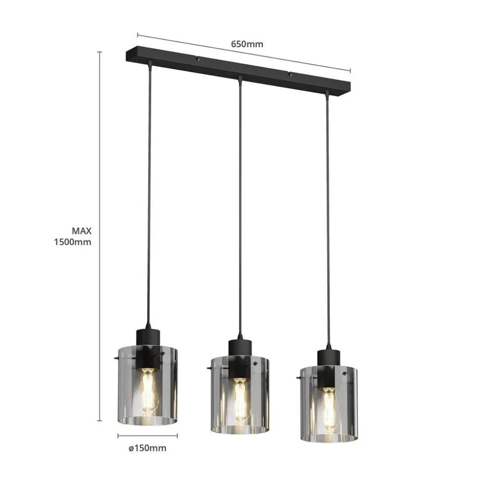 Lindby hængelampe Kourtney, 3 lyskilder, sort/grå, glas, E27