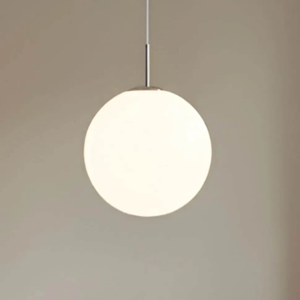 Enkel pendellampe Marike med hvid opalglaskugle Som pendellampe er Marike noget af en tidløs klassiker! Ingen særlige detaljer, bare en opal glaskugle – det er alt, hvad der skal til for at skabe en pendellampe med en så stilfuld effekt! Lyset er yderst behageligt og har en meget hyggelig karakter, fordi lyset trænger blændfrit og jævnt ind i omgivelserne. ALS det er over et bord eller som stilfuld soveværelsesbelysning, gør Marike pendellampen en god figur overalt og kan også bruges i grupper, hvilket yderligere forstærker det æstetiske indtryk.