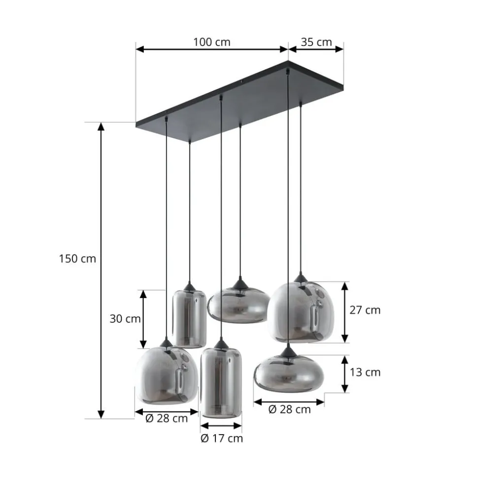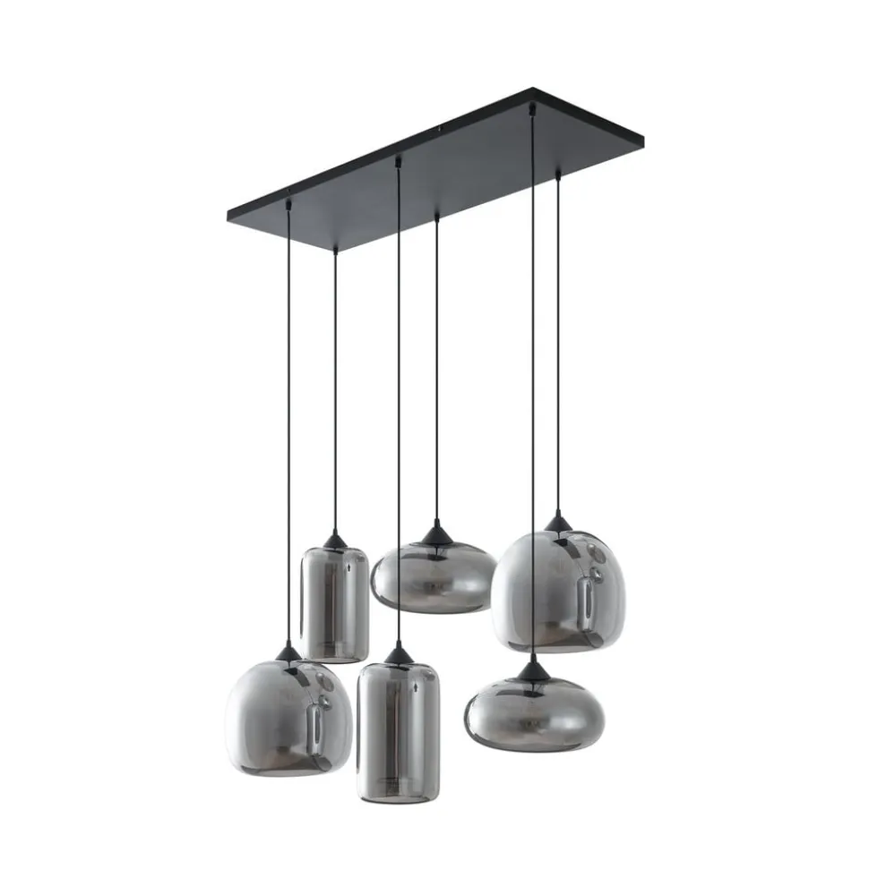 Lindby hængelampe Marla imponerer med sit moderne design, der harmonisk kombinerer glas og jern. Med sin røggrå og sorte farve passer den perfekt ind i moderne indretningsstilarter. Denne 6 lyskilder lampe er et blikfang, der giver enhver spisestue en særlig atmosfære. Den høje kvalitet og det stilfulde udseende gør den til et uundværligt element i krævende Raumgestalt. Især de tonede glasskærme i forskellige former skaber et fascinerende lysspil og fremstår let kromfarvede afhængigt af lysindfaldet.