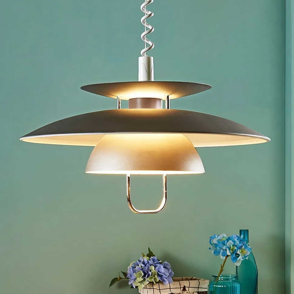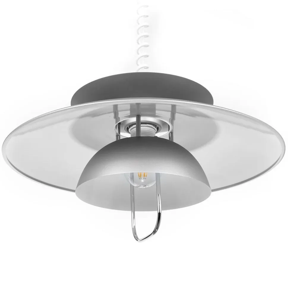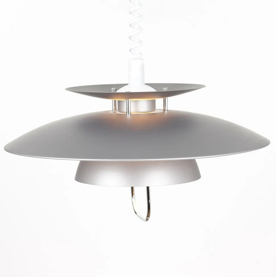 Højdejusterbar Nadija spisepladspendel med grå finish Denne pendellampe er beregnet til brug over en spiseplads, hvor den giver en god belysning af bordfladen og et hyggeligt lysskær i det hele taget. Hvor direkte eller indirekte lyset opleves, afhænger af, hvor højt skærmen er trukket op. Jo lavere den hænger, jo mindre direkte opleves lyset af de tilstedeværende. Takket være den spiralformede højdejusterbar kan højden justeres hurtigt og nemt – hver dag, hvis det er nødvendigt. Alt, hvad du skal gøre, er at give metalbeslaget i bunden af skærmen et hurtigt ryk. Den grå finish på hele ydersiden af skærmen er også værd at fremhæve. Det skaber en kølig elegance, som kan kombineres med mange stilfulde indretninger. Samlet set kan lampens stilistiske design kategoriseres som en del af det nordiske look, som også er meget populært i andre dele af Europa og værdsættes for sin designorienterede elegance.