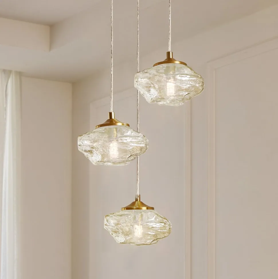 Lindby hængelampe Piatra, Ø25cm, 3 lyskilder, cognac/messing, glas