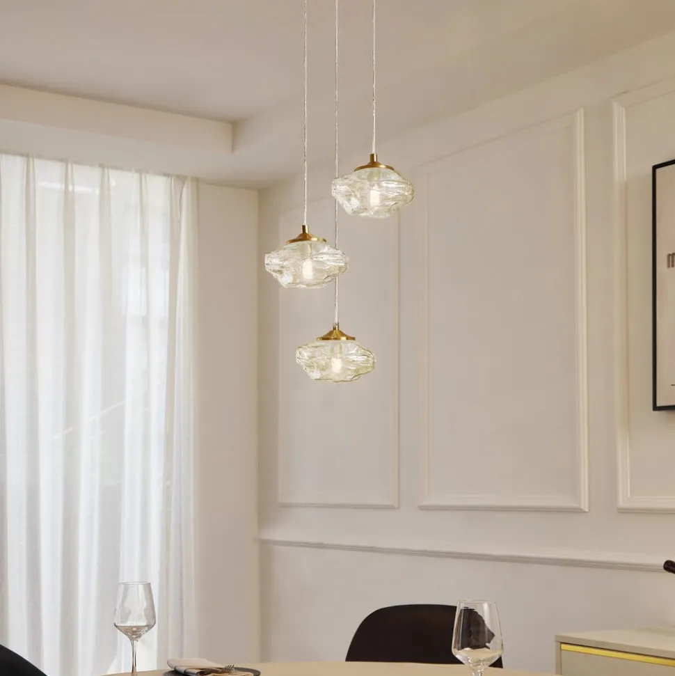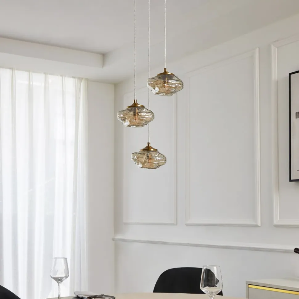 Piatra 3 lyskilder: elegance til stuen og spisestuen Piatra hængelampen i cognac og messing kombinerer moderne design med glassets varme og gennemsigtighed. Dette 3 lyskilder armatur skaber en atmosfære, der passer til både stuen og spisestuen. De enkelte lyskilder er anbragt i forskellige højder, og den blide lysfordeling gennem glasoverfladen skaber et behageligt miljø, hvor lysets fascination kan udfolde sig fuldt ud. Armaturet er ikke udstyret med en integreret dæmper, men lysstyrken kan justeres til individuelle behov ved at installere en ekstern dæmper for at skabe den ønskede stemning.