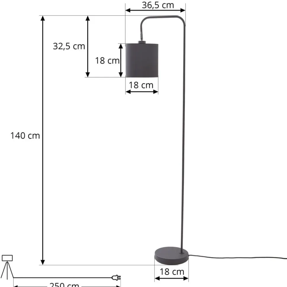 Tekstilgulvlampe Hinay med drejelig skærm Gulvlampen Hinay giver en hjemlig atmosfære. Den harmonerer med næsten alle møbler og er en berigelse for dit rum på grund af sit smukke design. Du kan nemt tænde og slukke gulvlampen ved hjælp af en kontakt. Lad dig overbevise af Lindby-mærkets høje kvalitet og fremragende design. Modellen Hinay fås i farverne sort og guld. Der kræves pærer med E27-sokkel til fatningen. Lampens flotte udseende giver ethvert rum en smuk atmosfære, som praktisk talt kan matche dine allerede eksisterende dekorative elementer.