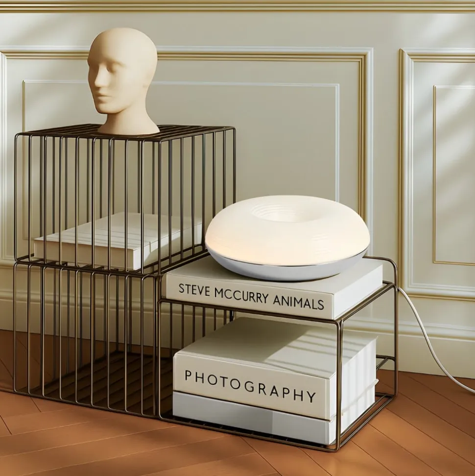 En anden særlig egenskab ved denne lampe er muligheden for individuel lysjustering. Takket være den dæmpbare lysdæmper kan lysstyrken reguleres i tre trin for at skabe den ønskede stemning. Desuden kan den også bruges som bordlampe.