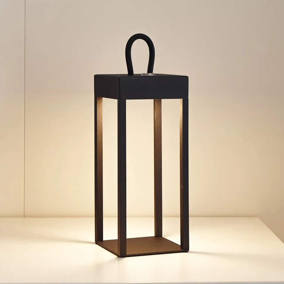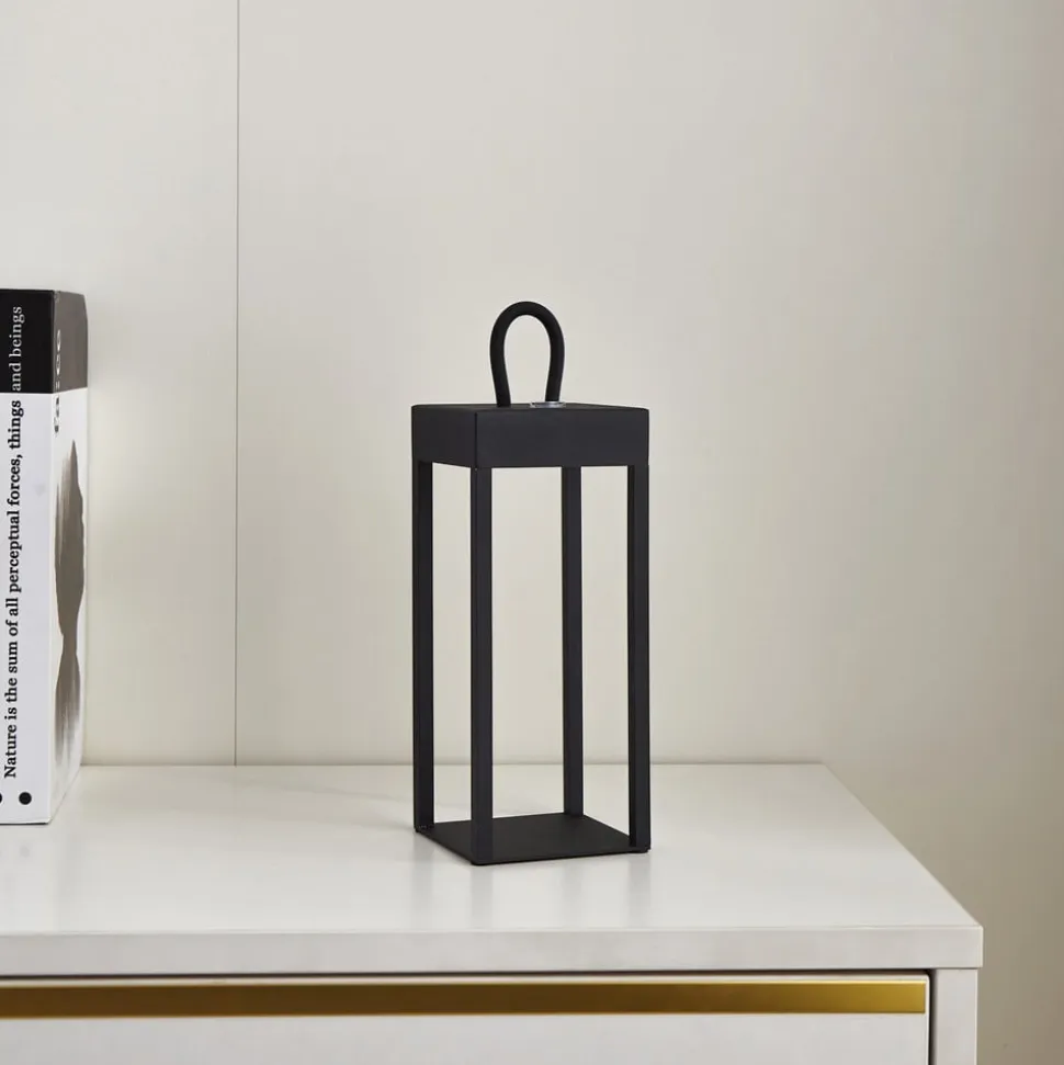 Belysningskunst til hjemmet: Iruna LED-bordlampe Iruna LED-bordlampe imponerer ikke kun med sit stilfulde design i sort metal, men også med sin alsidighed til brug i stuen, gangen og på terrassen. Denne moderne lampe bringer ikke kun elegance til dine rum, men er også energieffektiv takket være det integrerede LED-modul. Iruna LED-bordlampen kan dæmpes trinløst (10% – 100%) via en integreret kontakt, så den til enhver tid kan give den rigtige lysstyrke. Tekniske data – inkl. 2000 mAh Li-ion-batteri – inkl. USB-C-kabel – belysningstid 2,5 timer – opladningstid 2-3 timer – opladningsstrøm 1A