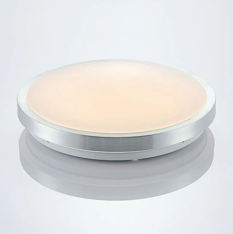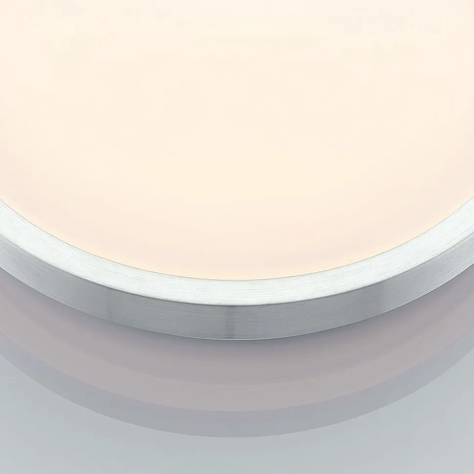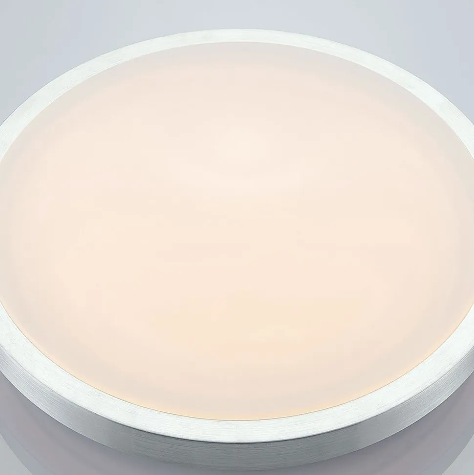 Emelie rund LED-loftlampe med aluminiumsramme Emelie er primært velegnet til moderne interiør, men udtrykker også noget tidløst med sin runde form og metalramme af aluminium. Takket være en satineret lysende overflade af plast sendes lyset blødt og jævnt ud i rummet. Noget af lyset slipper også ud mod loftet og skaber en attraktiv glorie af lys. Alt i alt er LED-loftlampen Emelie yderst velegnet til stemningsbelysning i en gang eller et køkken, og LED-teknologien lover god lysstyrke med et relativt lavt energiforbrug, så man kan gå ud fra en god effektivitet.