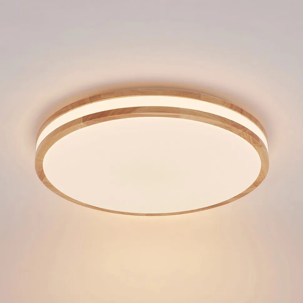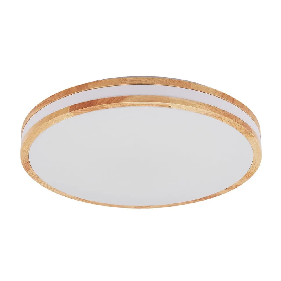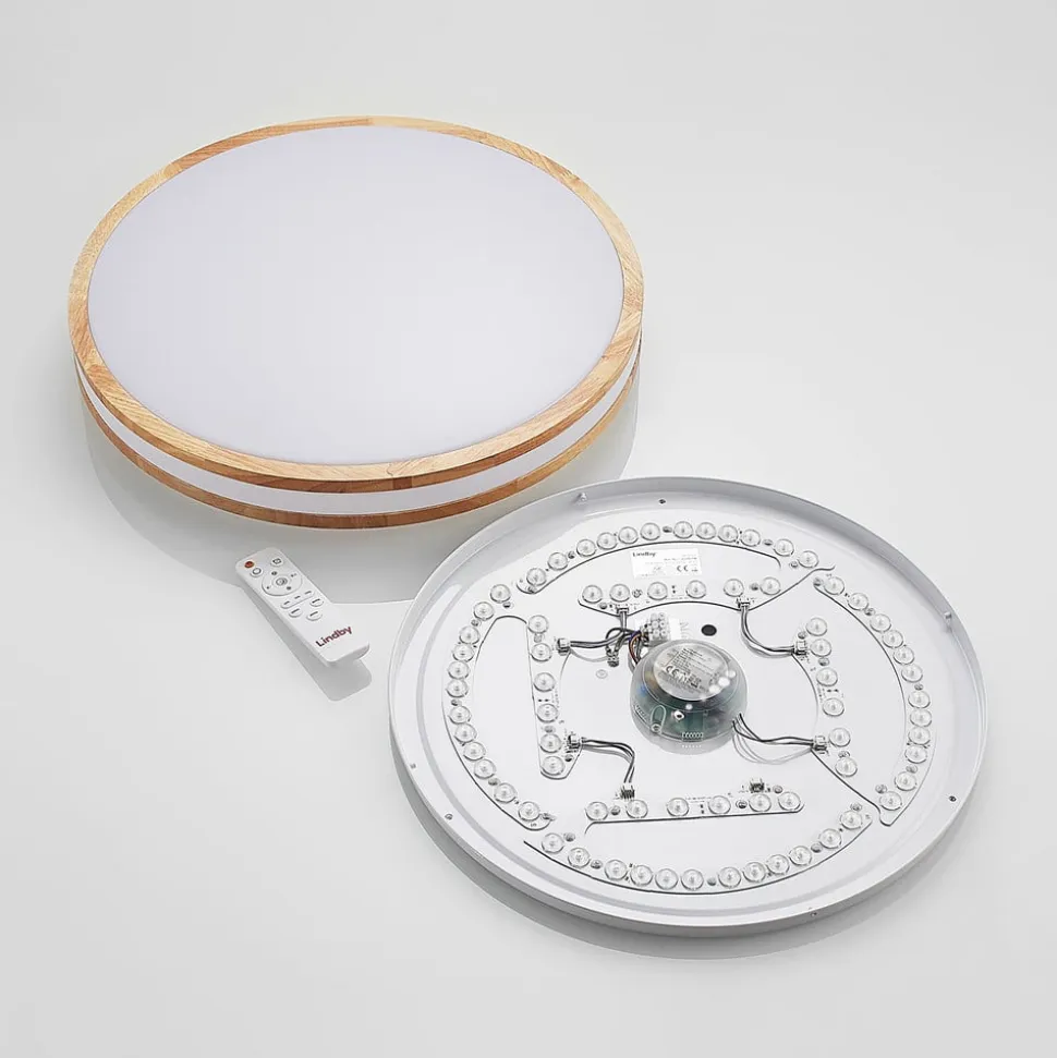 Lindby LED-loftlampe Emiva, 50 cm, CCT, fjernbetjening, træ