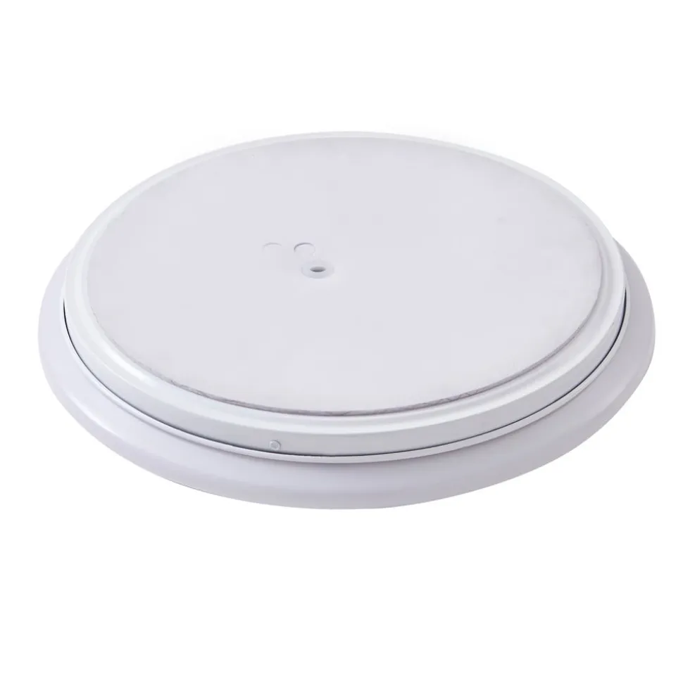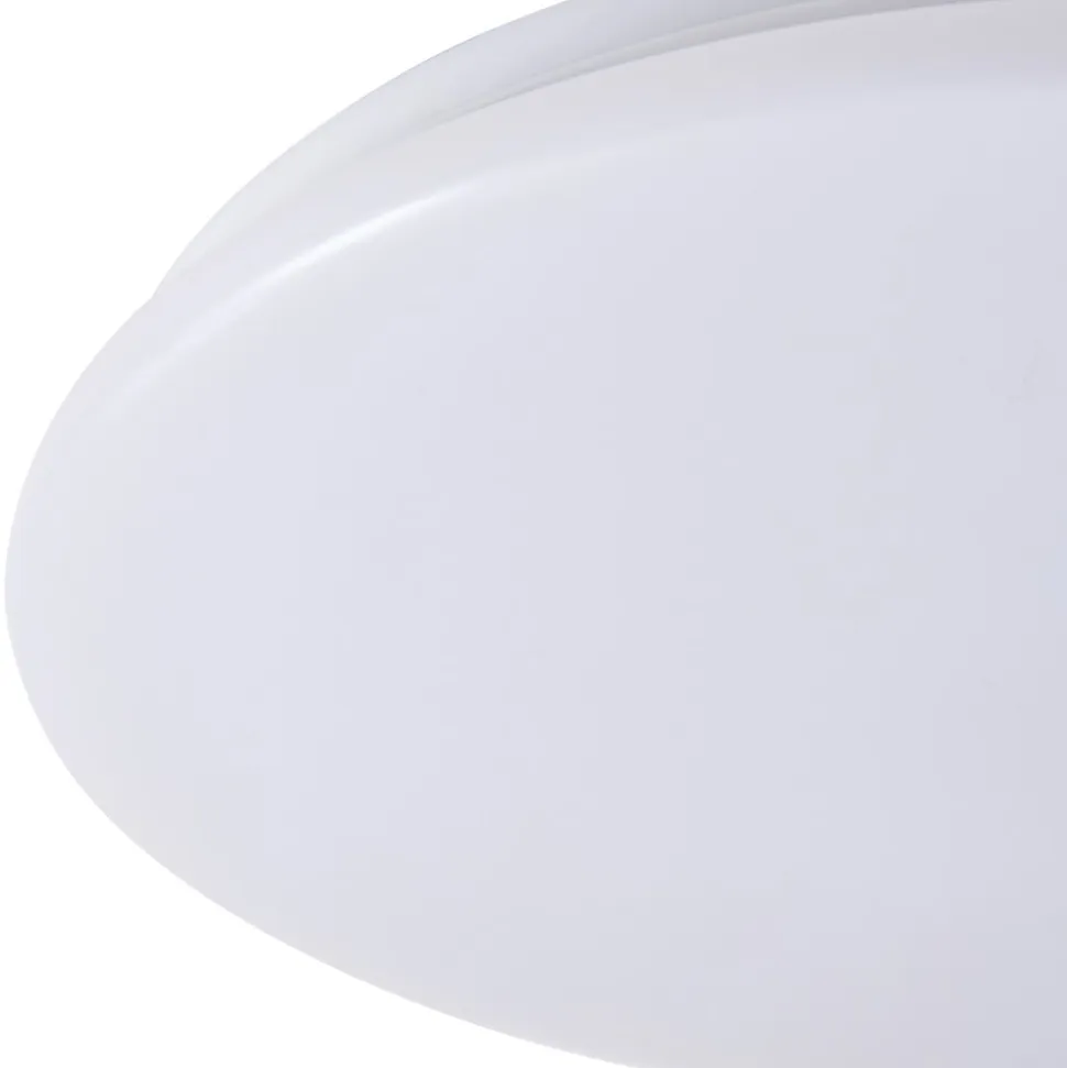 Eovi LED-loftlampe med IP44-beskyttelse, lysfarve varmhvid 3.000 K Takket være kapslingsgraden på IP44 er den slanke, runde Eovi LED-loftlampe perfekt til brug i badeværelser eller andre vådrum. De indbyggede LED’er giver en jævn og behagelig varmhvid lysfarve (3.000 K) gennem den buede skærm af plast.