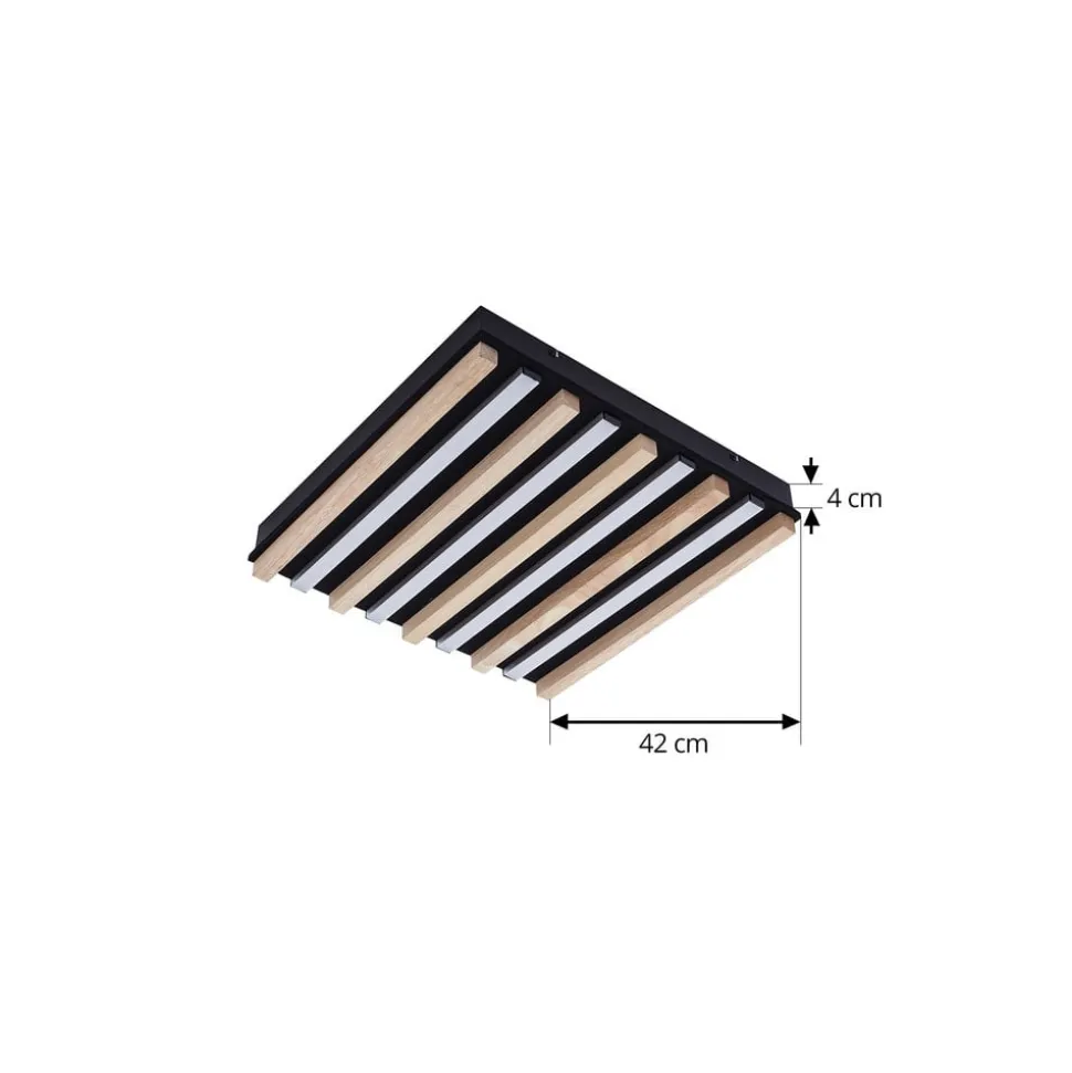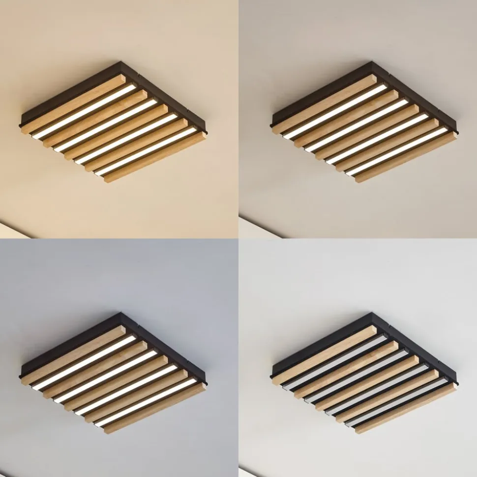 Kantet LED-loftlampe Firka i plast og træ – med praktisk CCT- og dæmpningsfunktion