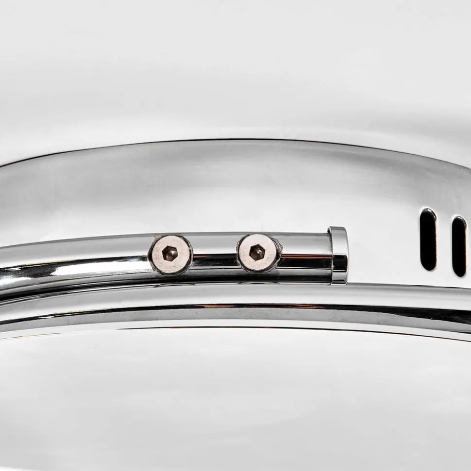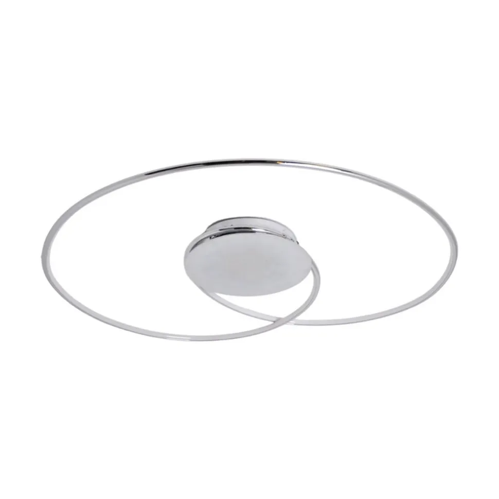 Elegant LED-loftlampe Joline med god lysstyrke Det er et relativt yndefuldt look, der forbindes med Joline, fordi den buede metalring, som næsten er kringleformet, er slank og fint udformet. Den blanke krom suppleres af hvid plast, bag hvilken LED-pærerne er placeret. Og det er netop en af de særlige egenskaber ved LED’er, da deres kompakte design giver mulighed for helt nye armaturdesigns, der nogle gange ser meget anderledes ud end det, vi er vant til fra et konventionelt armatur – en ramme kombineret med en traditionel skærm eller skærme. LED’erne kan også garantere en god energieffektivitet, og derfor lyser Joline kraftigt, men bruger ikke særlig meget strøm.